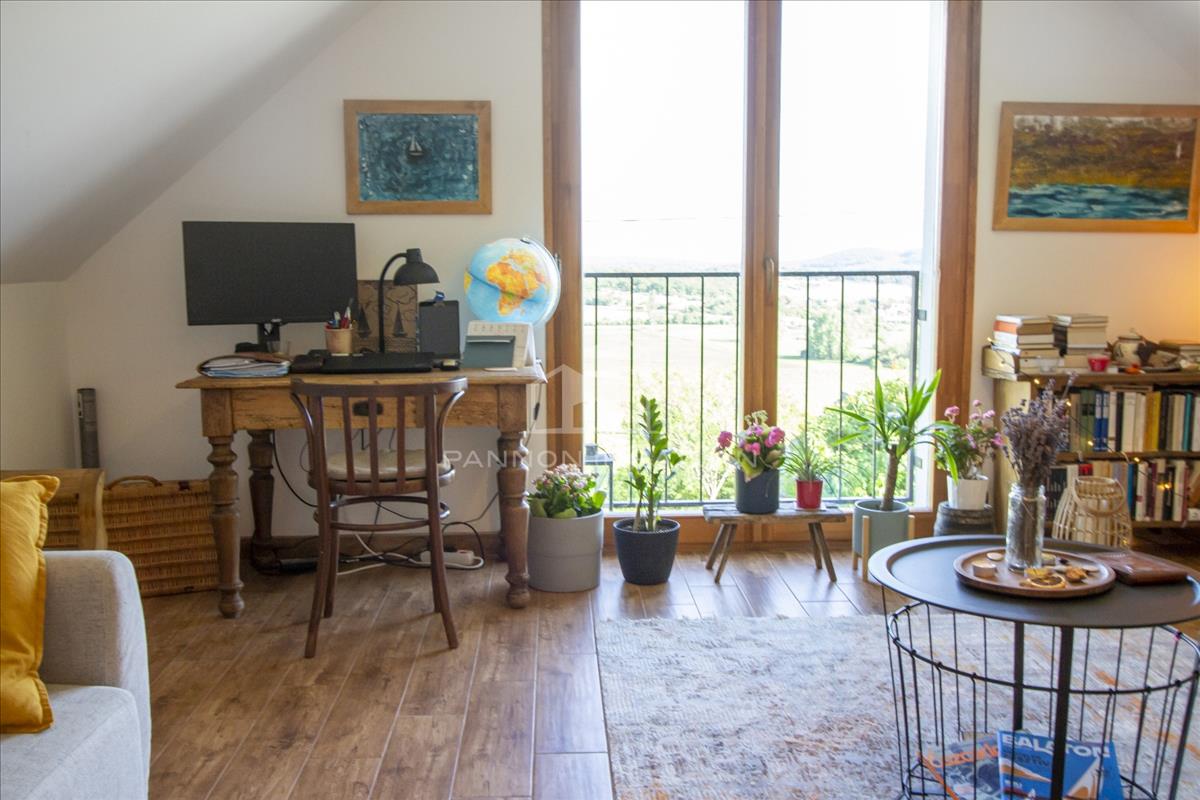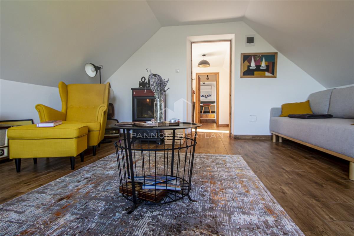 Meghitt környezetben, Pécsely könnyen megközelíthető, de mégis csendes zártkerti részén eladó 2022 őszén felújított, kétszintes, szigetelt, tégla építésű, a tájba tökéletesen illeszkedő, összesen ~ 100 m2-es, fiatalos, világos, akár állandó lakhatásra is tökéletesen alkalmas ház, 1011 m2-es telken.