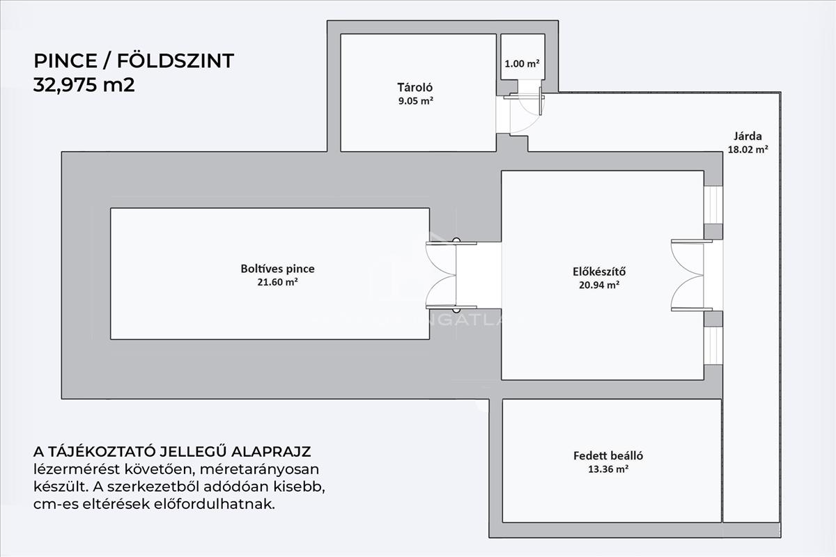 - ~ 33 m2-es alsó lakórészében egy 21, 6 m2 alapterületű, a tavalyi évben teljesen újrarakott boltívvel rendelkező száraz borospince és hozzákapcsolódó 21 m2-es pihenőrész, előkészítő-helyiség található, ahol a lehetőség adott az elkezdett bárpult és borozó rész, nyári konyha kialakítására.