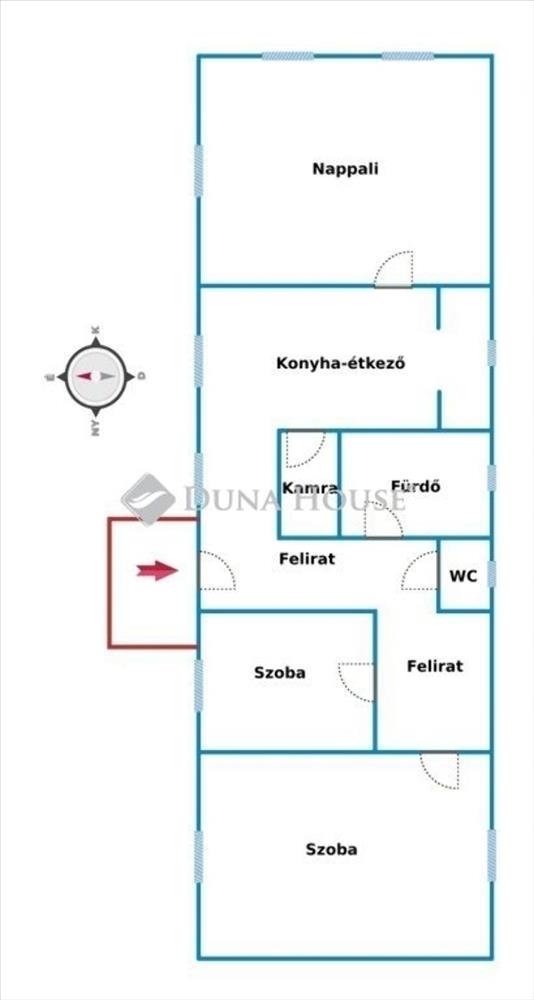 - **Helyiségek:** 2 hálószoba ( 3 szobává alakítható), 36 m²-es nappali, konyha-étkező, kamra, fürdő, WC
