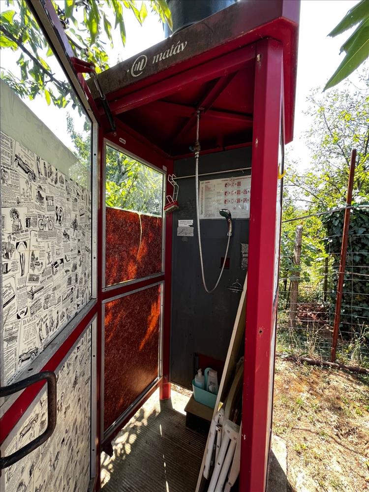 Fűteni cserépkályhával lehet. a telken van kinti wc és jópofa zuhanyzó is.