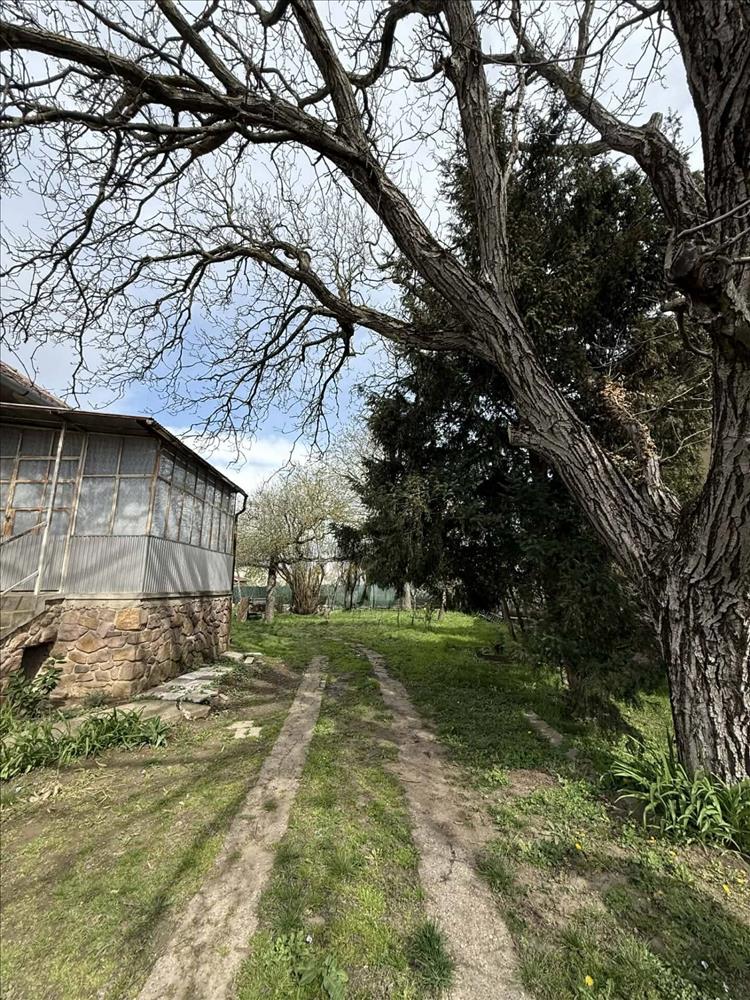 A három szobás, napfényes elosztású ingatlan konyhával, beépített terasszal, pincével és aknás garázzsal rendelkezik. a 790 nm -es, gyümölcsfákkal beültetett telek ideális pihenésre vagy kertészkedésre.