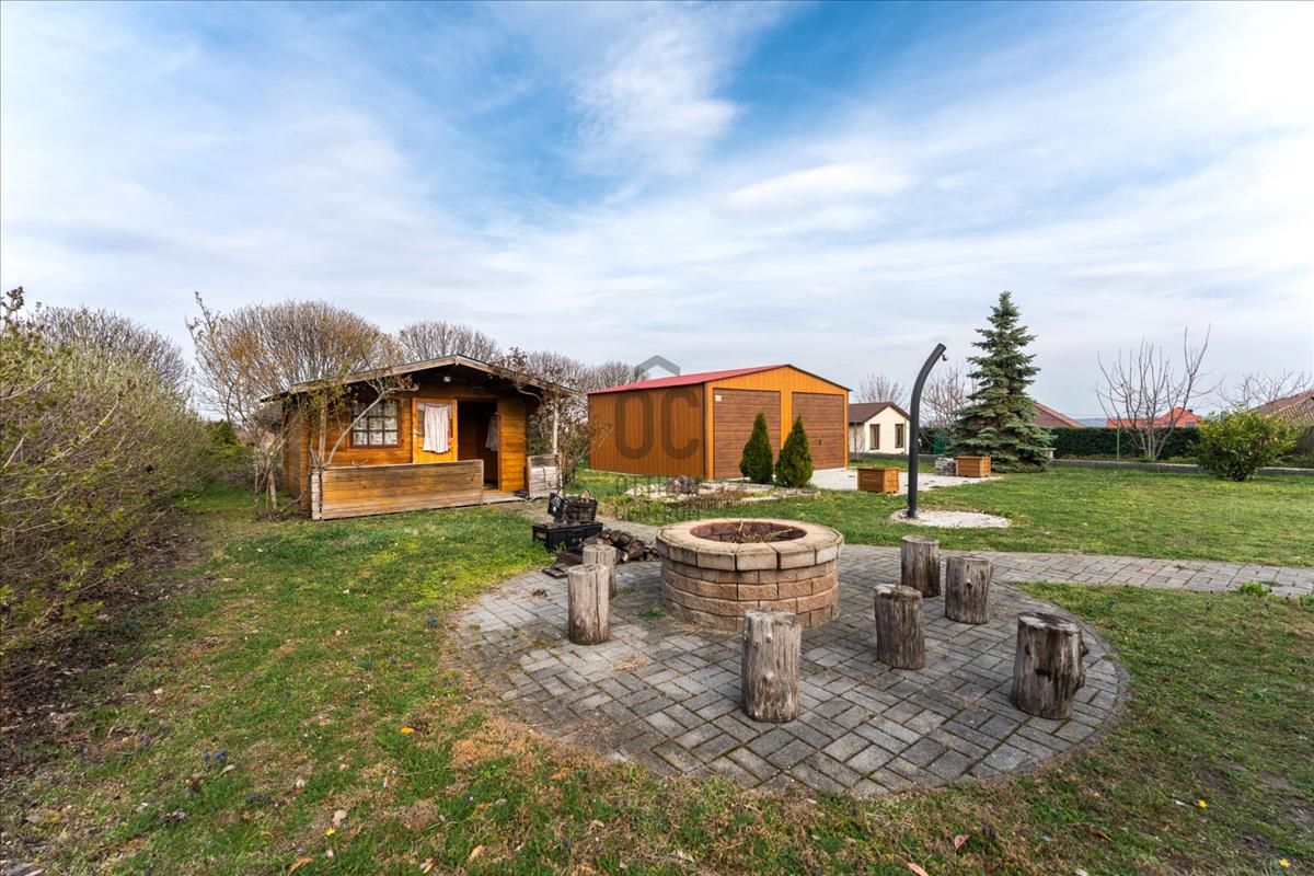 - a kertben egy dupla állásos garázs egy faház, és egy szalonnasütő kapott még helyet