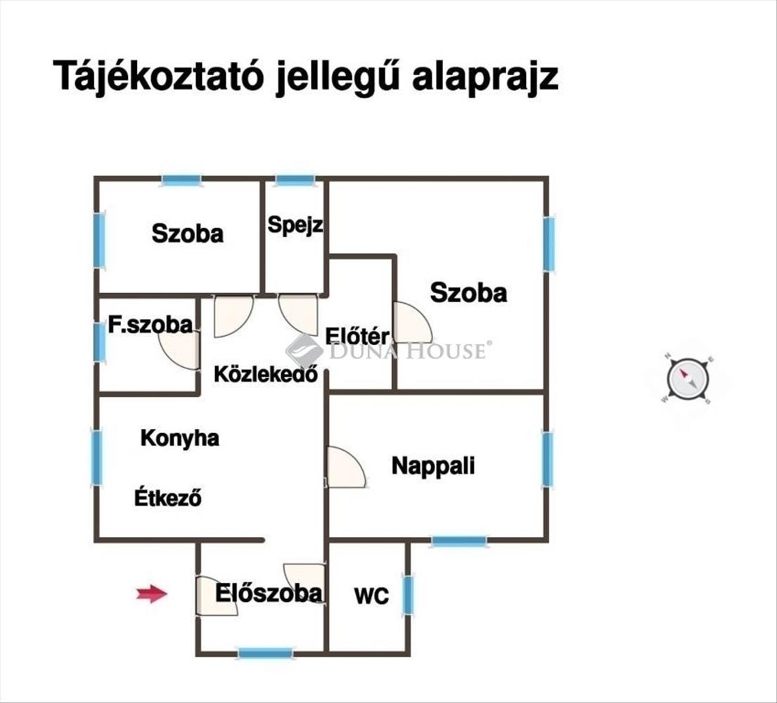 Felosztása praktikus: konyha+ étkező, a folyosón kandalló, 3 külön nyíló szoba, valamint egy fürdőszoba és külön wc biztosítja a kényelmes mindennapokat.