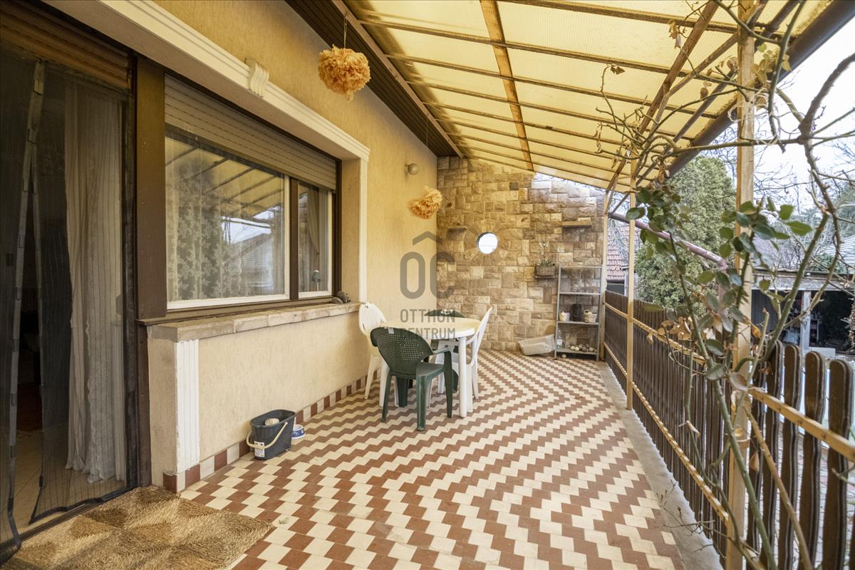 A bejáratnál fedett terasz, a konyhánál zárható terasz, az egyik szobából pedig egy loggia nyílik.