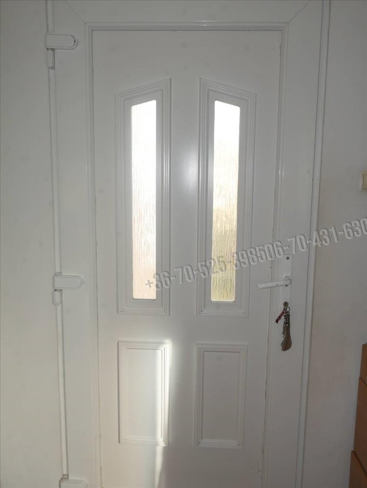 A nyílászárók fehér műanyagok hőszigetelt üveggel, redőnnyel, szúnyoghálóval felszereltek. Az épület két bejáratos; a hátsó ajtó üvegezett tömörfa, ez nyugati fekvésű teraszra nyílik.