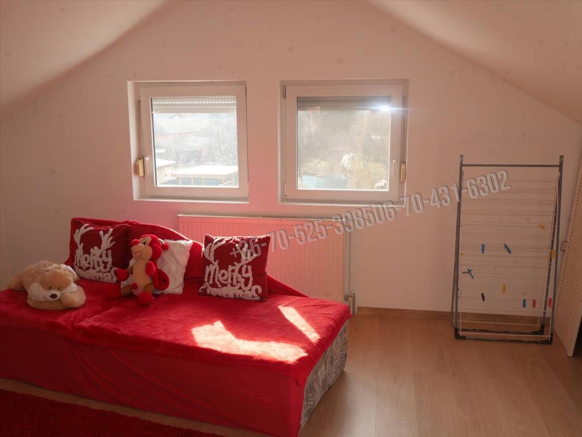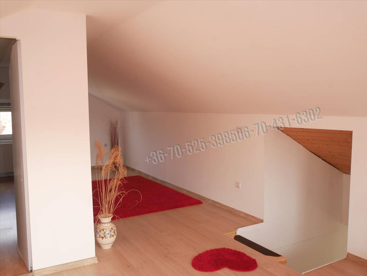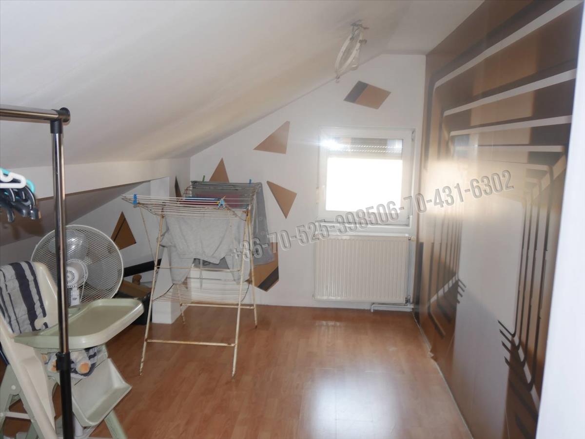 A tetőtérbe tömörfa lépcső vezet, itt 2 szoba található, plusz egy szoba még leválasztható igény szerint a tágas térből.