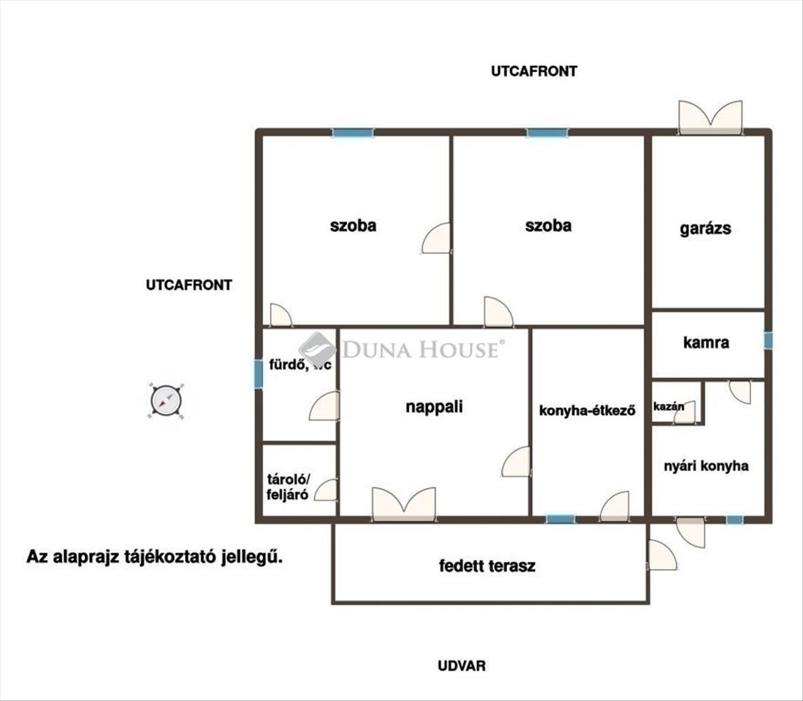 Maga az épület 111 m² alapterületű. Helyiségei: étkező, konyha, nappali, 2db szoba, fürdő a wc-vel, tároló/padlásfeljáró, valamint fedett terasz.
