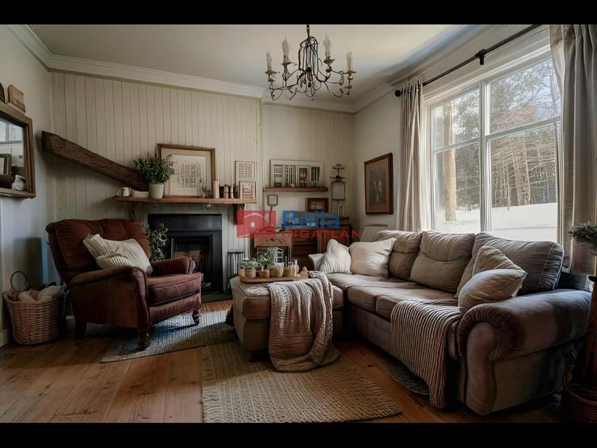 A nappaliban kandalló is képes befűteni a lakórészt, de alapvetően egy gázkazán biztosítja a fűtést radiátorokon keresztül, és a meleg vizet is.
