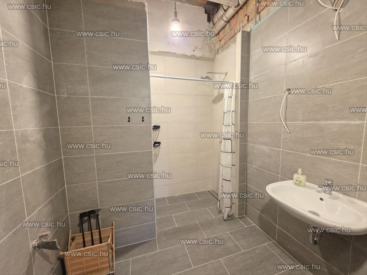 Az alsó szint kb. 100 M², amely a telek lejtésének köszönhetően kertkapcsolatos, és külön bejárattal is rendelkezik. Itt már megtörtént az önálló lakrész kialakításának jelentős része: új padlófűtés, gépészet, aljzatburkolat, műanyag nyílászárók, valamint a fürdőszoba elkészült. a további helyiségek befejezése az új tulajdonos igényei szerint történhet, így az alsó szint kiválóan alkalmas kétgenerációs használatra, vendéglakásnak, irodának vagy hobbitérré. a felső és alsó szint belső lépcsőn keresztül is megközelíthető.