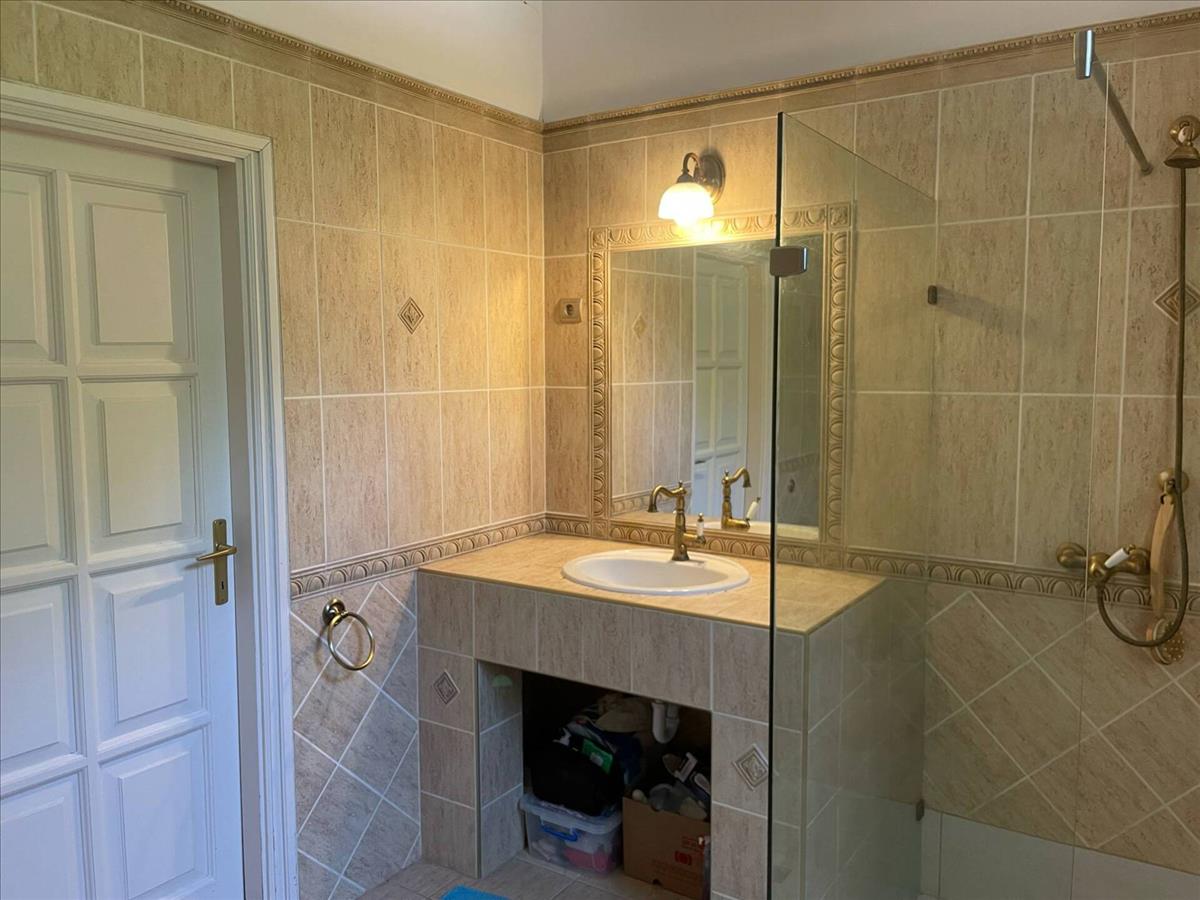 Az ingatlanba belépve a tágas előszobából egy 12 m²-es modern fürdőszoba nyílik, épített zuhanyzóval, amelyből továbbhaladva egy külön gardróbon át érkezünk meg a 20 m²-es hálószobába. Az óriási, 50 m²-es nappali a földszint szíve, közvetlen kapcsolattal konyhához, mely magas minőségű tölgyfa bútorzattal rendelkezik. Emögött található egy kamra, melybe akár két hűtőszekrény is elfér.
