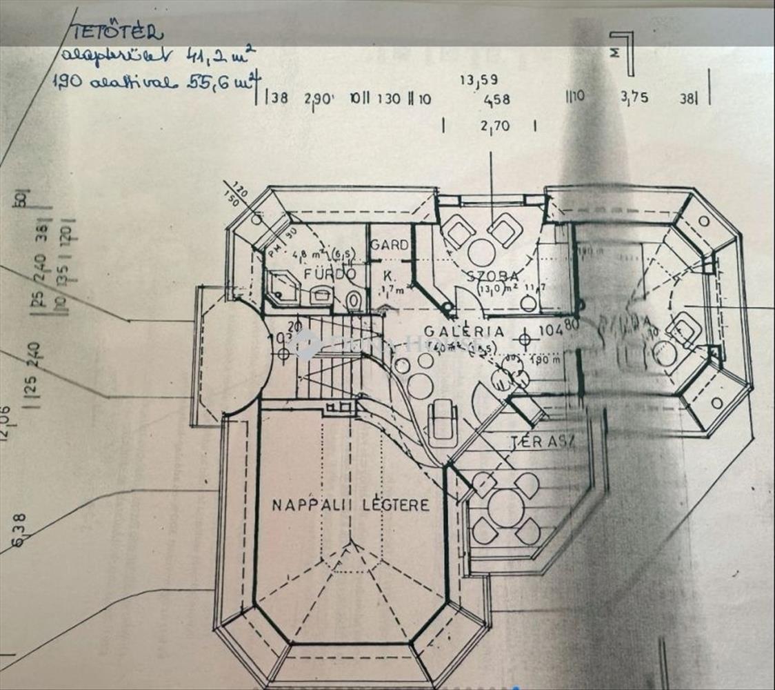 A tetőtérben két háló, tágas galéria és kijárat a második teraszra