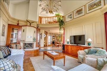 Impozáns nappali több mint 5 méteres belmagassággal, kandallóval, félköríves kialakítással