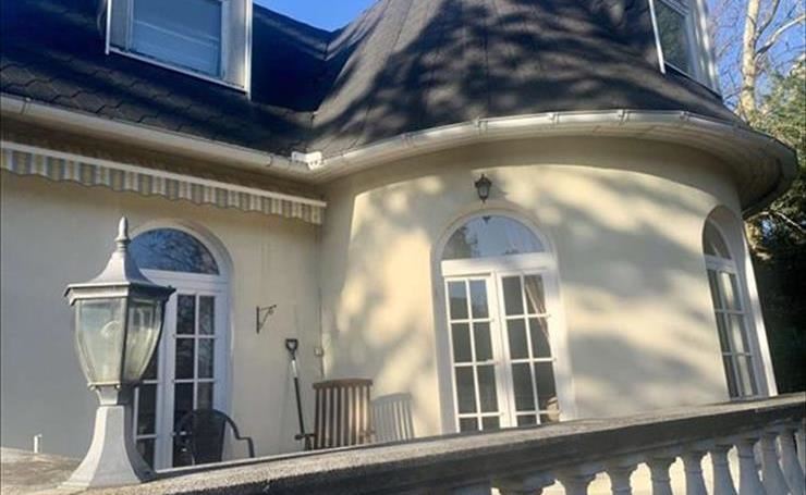 Külön, a kert végében álló 83 m2 -es épületben 7, 5 x 4 m-es medence van, ami a wellnessezés mellett intimmé teszi a kertet a hátsó szomszéd felől. a ház mellett két kocsibeálló van.