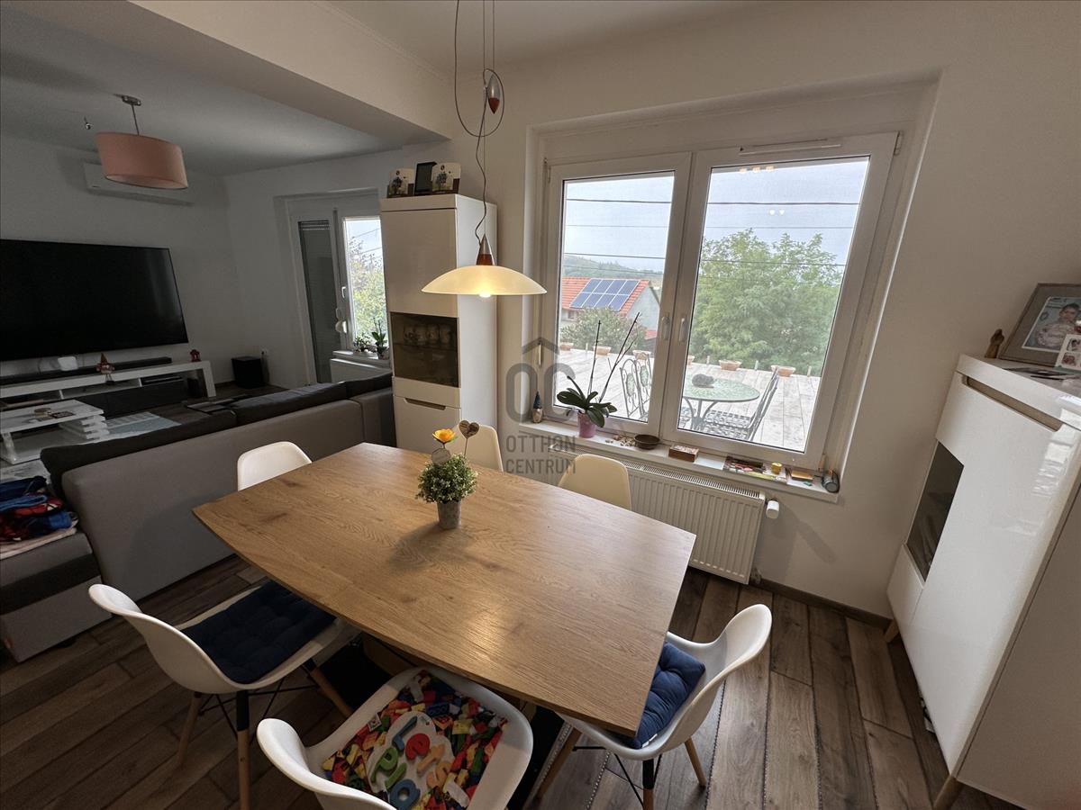 Pilisjászfalun, az erdő szélén, gyönyörű panorámával rendelkező 383 nm-s, igényes családi ház eladó.