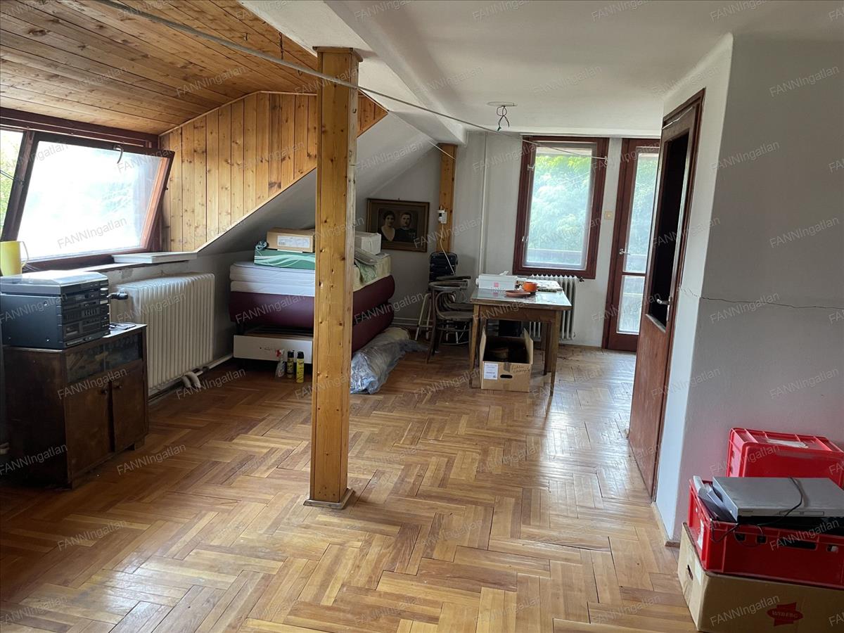 A tetőtéri szint, mely összesen 55 m2 területű, jelenleg egy külső feljárón közelíthető meg, az udvar felől. Itt helyet kapott egy nagyméretű nappali, valamint két külön helyiség. Ez a szint szintén alkalmas egy önálló lakás kialakítására, saját fürdőszobával, konyha-étkező-nappali helyiséggel, valamint egy önálló hálószobával. Rendelkezik egy erkéllyel is.