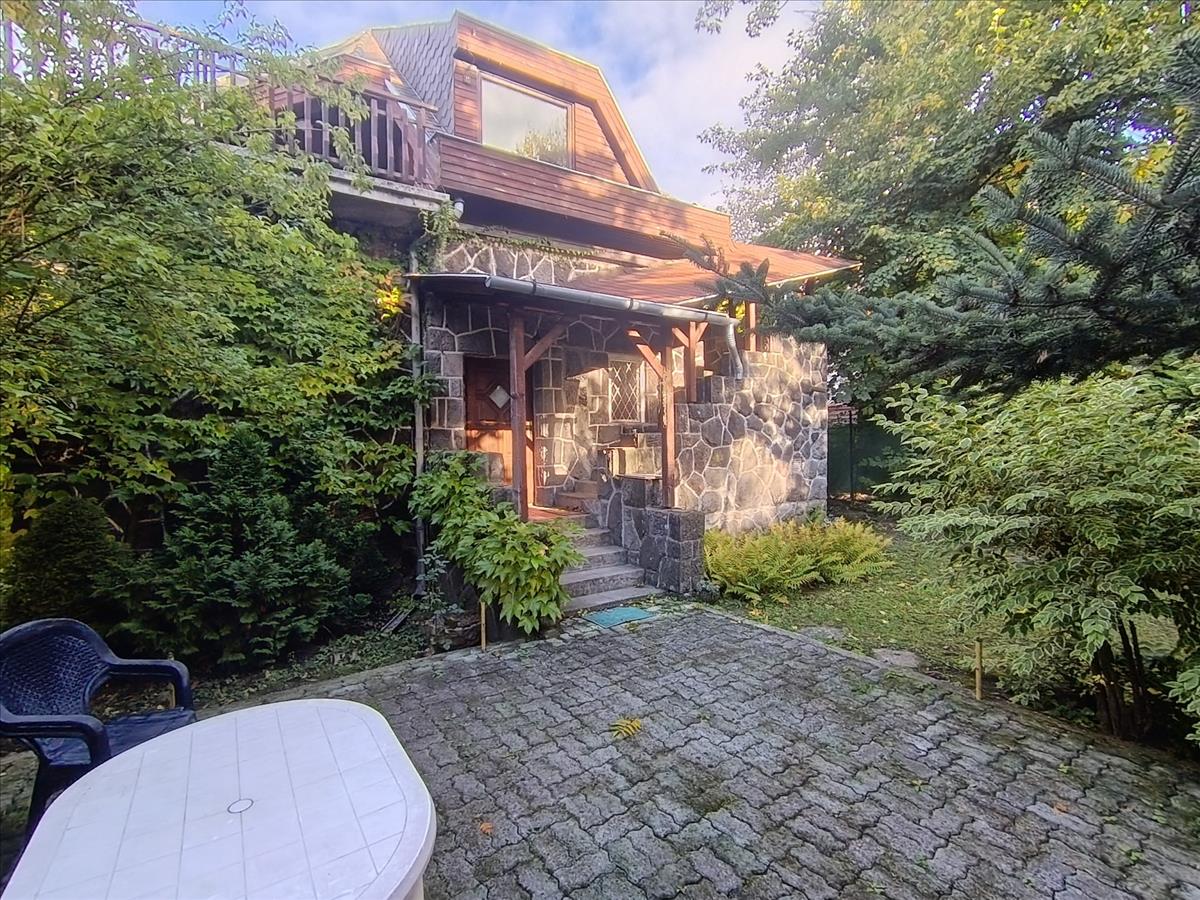 Dobogókő csendes kis mellékutcájában, az Arany János utcában, árnyas fák között húzódik a kétszintes, kívülről terméskő burkolattal védett családi ház, a tulajdoni lapon „hétvégi ház” megjelöléssel.A kert 1667 nm nagyságú, gondozott, számtalan dísznövény, és fenyő található rajta. a telek arányos téglalap alakú, az épület a telek középső részén helyezkedik el.