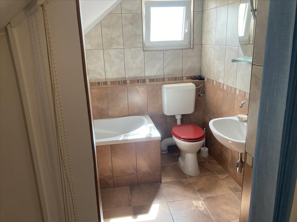 -tetőtérben: nappali (kandallóval), fél szoba, fürdőszoba.