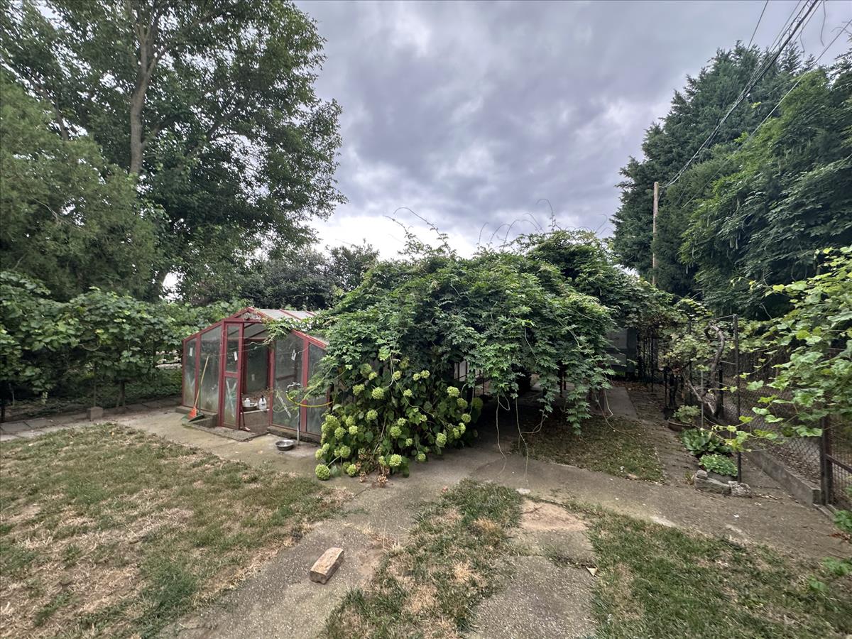 - utcafronttól kb. 50 Méterig gyümölcsfák, középen autó beállására gyeptégla van letéve a garázs bejáratáig