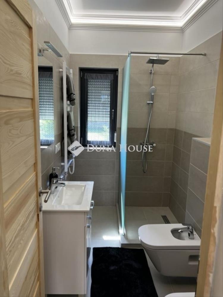 Pócsmegyeren a víztorony közelében kínáljuk eladásra ezt a 2022-ben épült földszintes, 85 m2-es, könnyűszerkezetes lakóházat. a ház belső terének kialakítása gondos tervezésről és minőségi megvalósításról árulkodik. a könnyűszerkezetes építési mód modern és energiatakarékos megoldásokat rejt, így a jövendőbeli tulajdonosok nem csak stílusos, de fenntartható otthonra is szert tehetnek, alacsony rezsiköltséggel. Amerikai konyhás nappali plusz 2 szoba kialakítású, 67 m2-es lakótérrel rendelkezik. Fűtése cirkóval, padlófűtéssel, hűtése klímával megoldott. Minden ablakon redőny található. a 17 m2-es tornác és a 17 m2-es fedett terasz lehetővé teszi, hogy az otthonunkat a szabadtéri élményekkel ötvözzük. a ház kertje igazi menedék a mindennapok rohanásából. a gondozott zöld terület, kiépített világítással, ahol a különféle növények és a szépen parkosított környezet tökéletes helyet biztosít a pihenésre és a családi összejövetelekre. a kút nem csak praktikus része a kertnek, hanem hangsúlyos eleme is, míg az öntözőrendszer gondoskodik a növényzet állandó frissességéről. a biztonságot kiépített kamera fokozza.Pócsmegyer egy nyugodt, természethez közel eső település, ahol a város zajától távol, de mégis a főváros közelségében élhetünk. a környezet ideális választás azok számára, akik egy csendes, de jól megközelíthető helyen keresik az otthonukat. a településen számos szabadidős tevékenység kínálkozik, a közeli Duna part pedig kiváló helyszínt biztosít a vízi sportok szerelmeseinek. Ha ön egy békés környezetre vágyik, ahol mégis minden fontos szolgáltatás elérhető, Pócsmegyer tökéletes választás lehet. a közelben buszmegálló is található. További információkért és a megtekintéssel kapcsolatban várom jelentkezését!