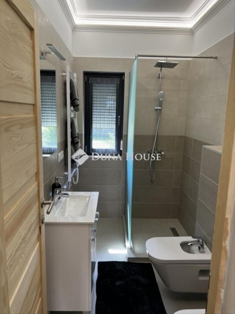 Pócsmegyeren a víztorony közelében kínáljuk eladásra ezt a 2022-ben épült földszintes, 85 m2-es, könnyűszerkezetes lakóházat. a ház belső terének kialakítása gondos tervezésről és minőségi megvalósításról árulkodik. a könnyűszerkezetes építési mód modern és energiatakarékos megoldásokat rejt, így a jövendőbeli tulajdonosok nem csak stílusos, de fenntartható otthonra is szert tehetnek, alacsony rezsiköltséggel. Amerikai konyhás nappali plusz 2 szoba kialakítású, 67 m2-es lakótérrel rendelkezik. Fűtése cirkóval, padlófűtéssel, hűtése klímával megoldott. Minden ablakon redőny található. Igény esetén a padlástér felé bővíthető a lakótér. a 17 m2-es tornác és a 17 m2-es fedett terasz lehetővé teszi, hogy az otthonunkat a szabadtéri élményekkel ötvözzük. a ház kertje igazi menedék a mindennapok rohanásából. a gondozott zöld terület, kiépített világítással, ahol a különféle növények és a szépen parkosított környezet tökéletes helyet biztosít a pihenésre és a családi összejövetelekre. a kút nem csak praktikus része a kertnek, hanem hangsúlyos eleme is, míg az öntözőrendszer gondoskodik a növényzet állandó frissességéről. a biztonságot kiépített kamerarendszer fokozza.