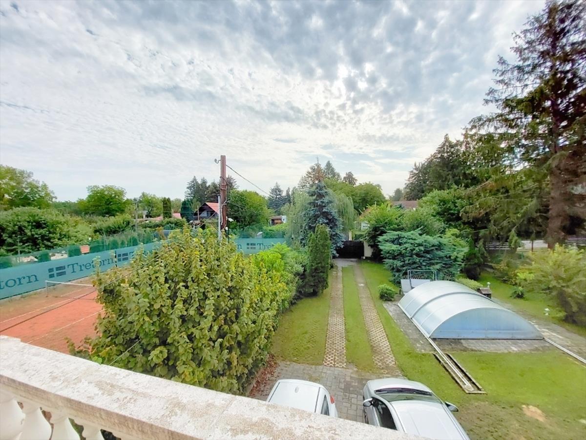 A telek két helyrajzi számon szerepel, ebből az egyiken (546 nm) salakos teniszpálya, a másikon (559 nm) a három szintes családi ház dupla garázzsal, kerti medencével, télikerttel, benne jacuzzival. a kert automata öntözőrendszerrel ellátott.