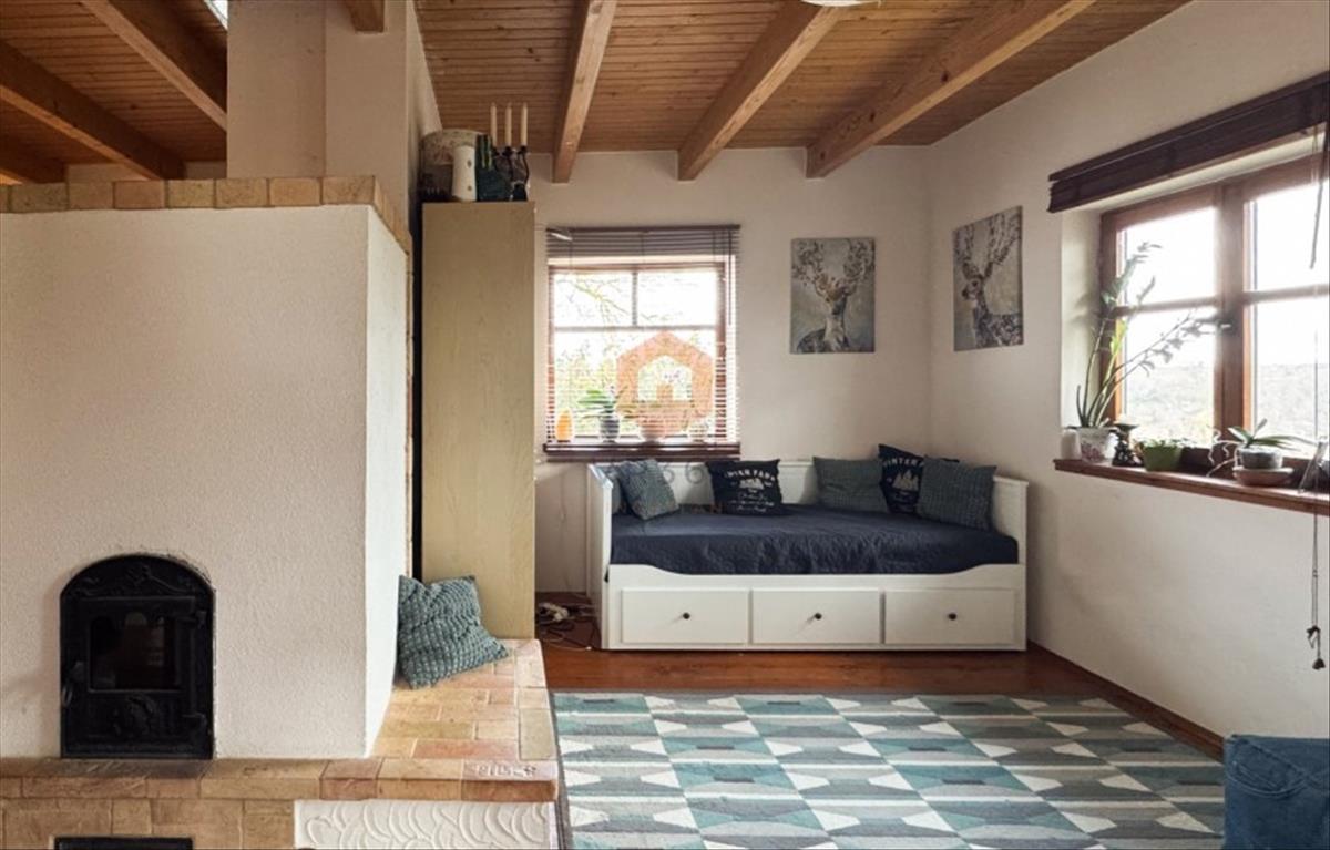 Ballra a még egy hálószoba van és a nappali a hangulatos kandallóval.