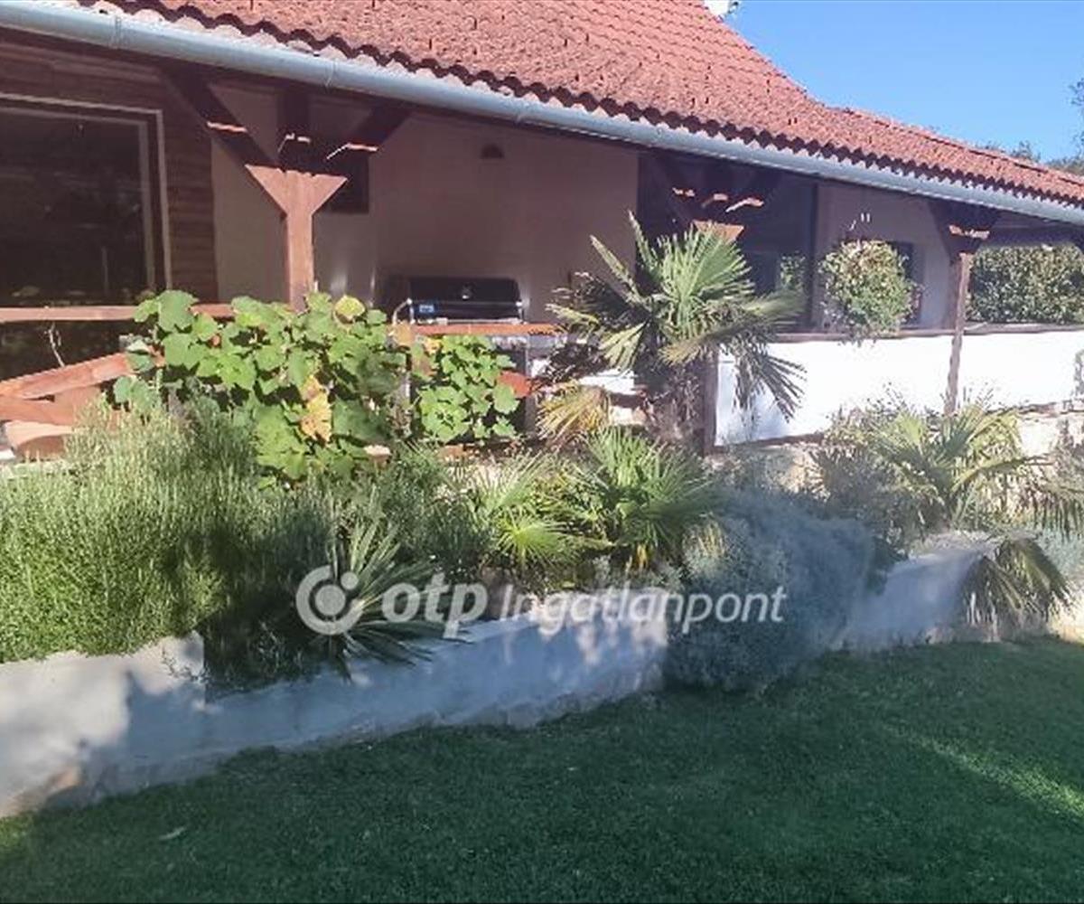 A kert közepén 35 négyzetméteres pavilon van és egy 48 m3-es ?Úszótó? Található, nagy szivattyúval és szűrőrendszerrel, nagy uv fényrendszerrel, sok szép növénnyel. a nagy pavilont exkluzív kerti ülőgarnitúra, amerikai kültéri konyha teszi hangulatossá.