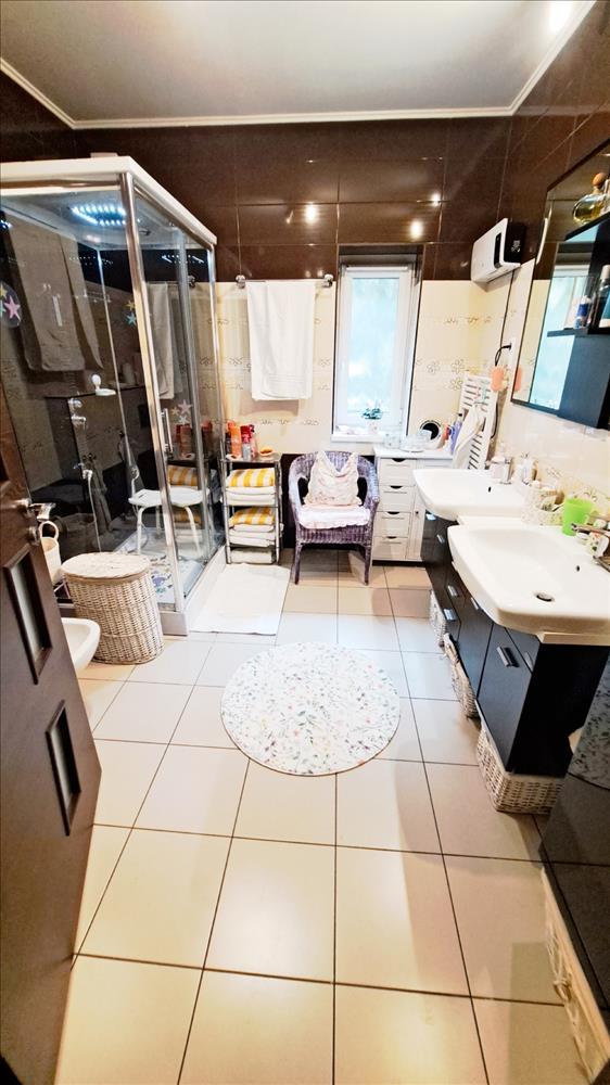 Alapterülete 180 nm , melyben nagy nappali, amerikai konyha nagy étkezővel, 4 szoba (melyből az egyik gardrób-szoba), fürdőszoba: dupla mosdó, zuhany-WC-bidé, háztartási helyiség-WC, kamra, kazánház, 2-állásos fűtött garázs, nagy fedett terasz található.