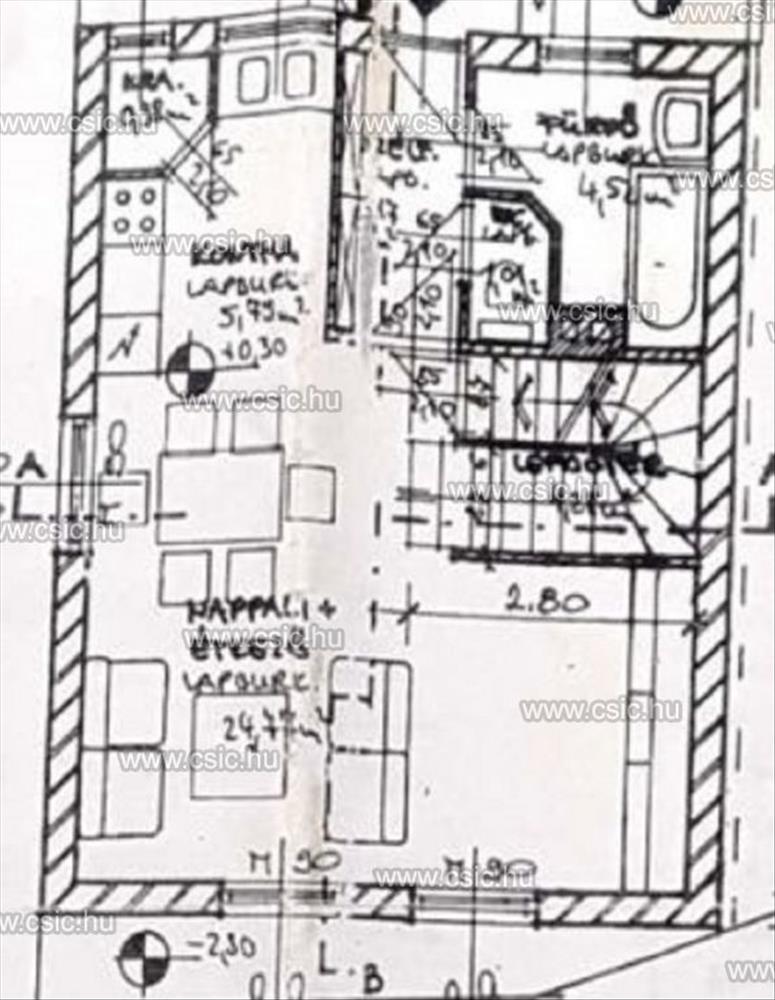 2 Lakás: Emeleti: (Belső, kétszintes) Nappali-amerikai konyhával+ fürdőszobával.