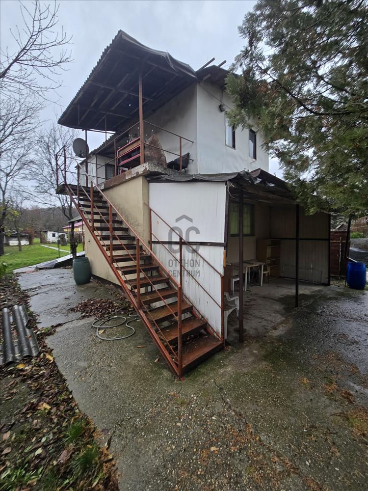 Felső szint: fa szerkezetű, külső lépcsővel közelíthető meg; stabil és használható, ugyanakkor tartós lakhatáshoz felújítást igényel.