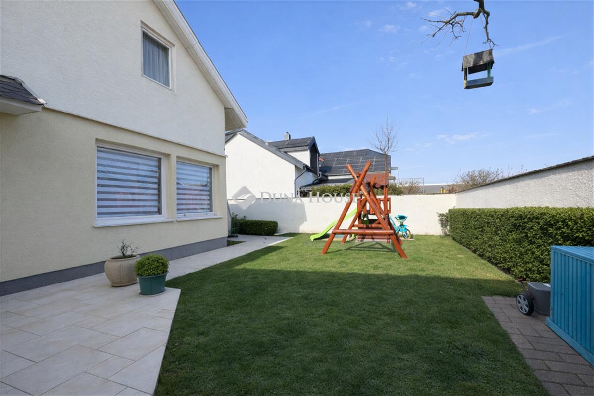 A ház csendes zsákutcában helyezkedik el, Pomáz központi részén található, közvetlen kertkapcsolattal rendelkezik egy hátsó terasszal. a kert ápolt, rendezett, levendula, jázmin, tujasövény, rózsák, díszfák és egy bográcsoló hely teszik igazán élvezhetővé. Az öntözést egy fúrt kút biztosítja. a dolgozószoba felett beépített padlás van ( 30%-os belmagassággal), ezen kívül egy kamra ad helyet a kerti eszközöknek, szerszámoknak. Egy különálló 3 nm -es tárolót pedig a bicikliknek lett kialakítva. Két autóbeálló zalálható a ház mellett. ( Bár az utcában átmenő forgalom az ingatlant követően egyáltalán nincs. )