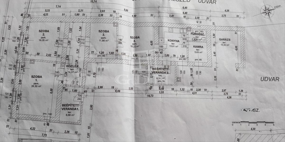 - a nagy része kő és vályog falazatú (50 cm! ), Az alaprajzon szereplő 26 nm-es szobából ytong falazatú fürdőszoba került kialakításra.