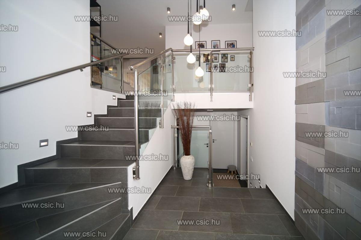 A családi ház természetvédelmi terület határán, hasonlóan igényes, modern családi házakkal beépült utcában található, mely a lélegzetelállító panoráma ellenére könnyen megközelíthető. Autóval 2 perc a spár, gyógyszertár, dm, közösségi ház. Iskola, posta, óvoda orvosi rendelő 5 perc alatt elérhető. a hév menetideje Budapest Batthyány térig 30 perc.