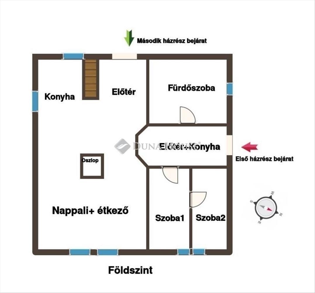 Az első bejáratnál 1 szoba található jelenleg megosztva, konyhaszigettel és fürdőszobával ellátva, alapterülete 40 nm.