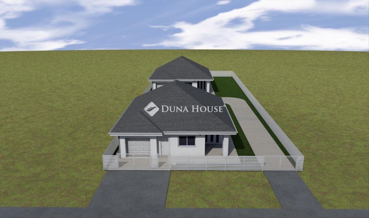 Önálló családi ház ikerház áráért pusztaszabolcson! Pusztaszabolcs keresett részen, családias környéken, család barát elosztású önálló családi ház eladó. a telek terület összesen 1095 m2-es melyre 2 db önálló családi ház épül. Még mindkettő eladó. Ez az ingatlan a hátsó épület, mely szolgalmi úton közelíthető meg. Az ingatlant a 2025-ös év kedvezményes feltételeivel tudja megvásárolni. Otthon start típusú 3 %-os hitel és CSOK Plusz igényelhető, Illeték kedvezmény egyaránt. Foglalja le már most leendő otthonát 10%-al. Az építkezés hamarosan kezdetét veszi. Az ingatlan nettó hasznos területe 88, 75 m2 + 15, 53 m2 garázs, 2 db fedett terasz, 547 m2 kertkapcsolattal. a helyiségek napfényesek, köszönhetően a jó tájolásnak és a jó méretű egyedi nyílászáróknak. Elosztását tekintve:Földszint:- Előszoba- 3 jó méretű hálószoba- Tágas amerikai konyhás nappali fedett teraszkapcsolattal- Fürdőszoba- Háztartási helyiség- 1 állásos garázs /kérhető szobának is /- 547 m2-es saját kertMűszaki adatok:- 30-as Porotherm tégla, 10 cm Ytong válaszfalak- 15 cm homlokzati szigetelés- Hőszivattyú 300 literes használati meleg víz tartállyal- h- tarifás mérőszekrény kialakítás- Minden helyiségben padlófűtés- Betoncserép- 3 rétegű 6 légkamrás nyílászárók, kívül antracit kivitelben- 1 db autónak kocsibeálló- Riasztó előkészítése- Szaniterek- Hideg/meleg burkolatok ( 6 000 Ft/m2 meleg: 6 000 Ft/ m2 )- Beltéri ajtók ( 60 000 Ft/ db )- Bejárati ajtóEzek mind kiemelkedő minőségben és az átlagnál magasabb áron választhatóak. Árlista tőlem kérhető. Az építkezés megtekintése után minden a házzal kapcsolatos dokumentáció rendelkezésre áll. Vállalkozó garantáltan megbízható, rugalmas, rengeteg referencia munkával, amit közösen megtudunk tekinteni a nagy döntés előtt. Környék rendezett, minden perceken belül elérhető. Iskola, óvoda, bevásárlási lehetőségek, MO. Várható átadás: 2026 TavaszTovábbi információkért hívjon bizalommal. FIX 3% lakáshitelre megvehető