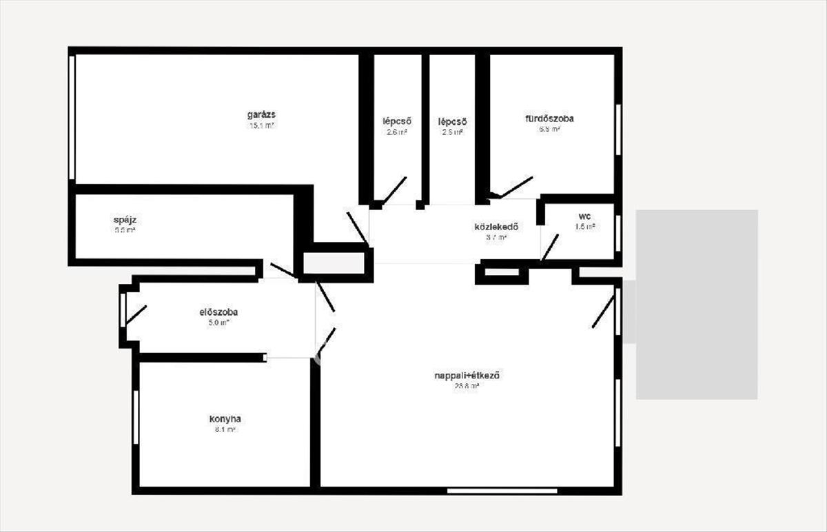 Az alsó és felső szinten összesen három külön nyíló szoba, egy tágas, világos nappali, két fürdőszoba, egy konyha és egy spájz gondoskodik a mindennapi kényelemről. a házhoz tartozik egy különálló garázs is, valamint egy félig alápincézett rész, ahol több helyiség áll rendelkezésre tárolásra, műhely kialakítására vagy akár hobbitérként való hasznosításra.