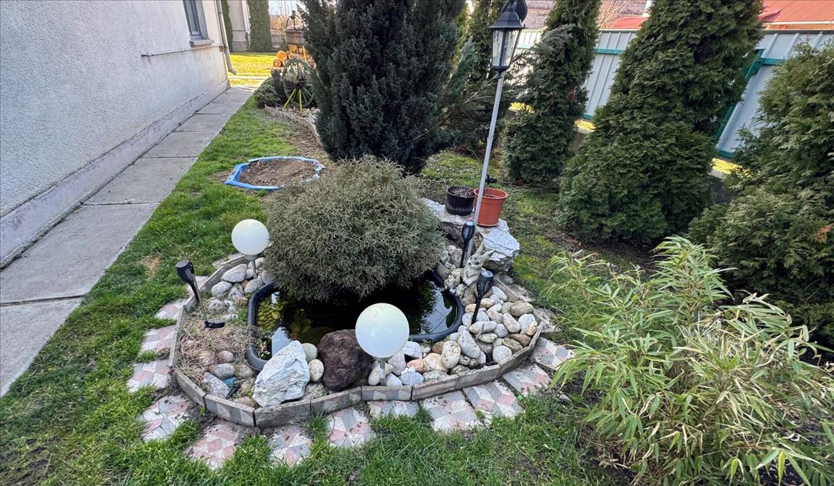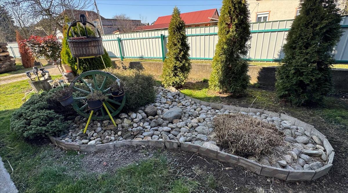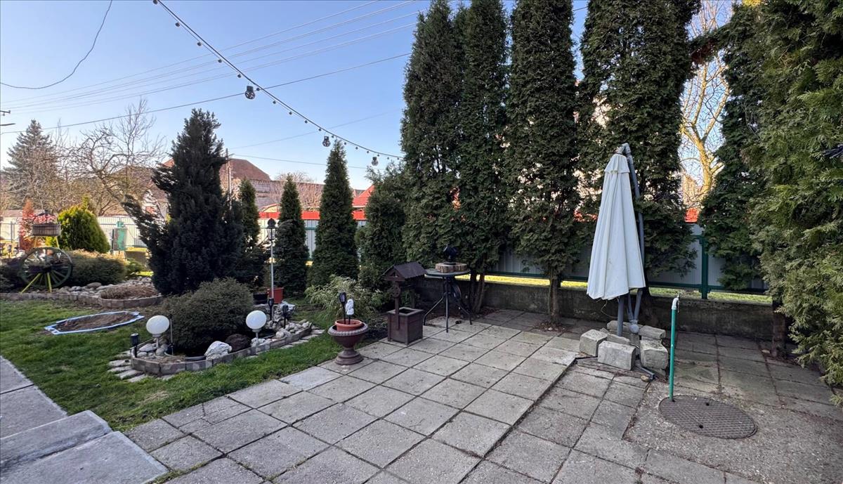 A ház egy 807 m²-es saroktelken helyezkedik el, amely teljes egészében körbekerített. Az utcafronti kerítés gondozásmentes lemezből készült, és két bejárattal rendelkezik, ami kényelmes megközelítést biztosít. Az udvar rendezett, kiválóan alkalmas kertészkedésre, pihenésre vagy családi sütögetésekre. a telken tágas garázs, valamint plusz két tárolóhelyiség is található, így bőven jut hely az autó, szerszámok vagy hobbi eszközök számára. a kertben kerti csap is rendelkezésre áll.
