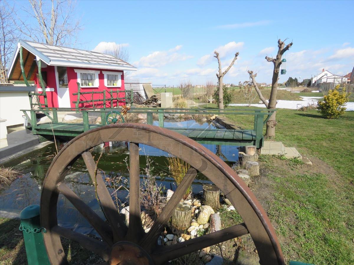Körbekerített 1440m2-es összközműves telek, egy valódi kis édenkert. a gondosan kialakított udvar rendelkezik kiépített kocsibeállóval, számos értékes, felújított és hangulatos melléképülettel, műhellyel és egy kertitóval, amely fölött egy kis hídon sétálhatunk, továbbá egy madarak tartására kialakított madárház, 4 db egyedi magaságyással és a telek hátsó részén számos gyümölcsfával. a hátsó terasznál megbújó medence kiépített gépészeti helyiséggel.