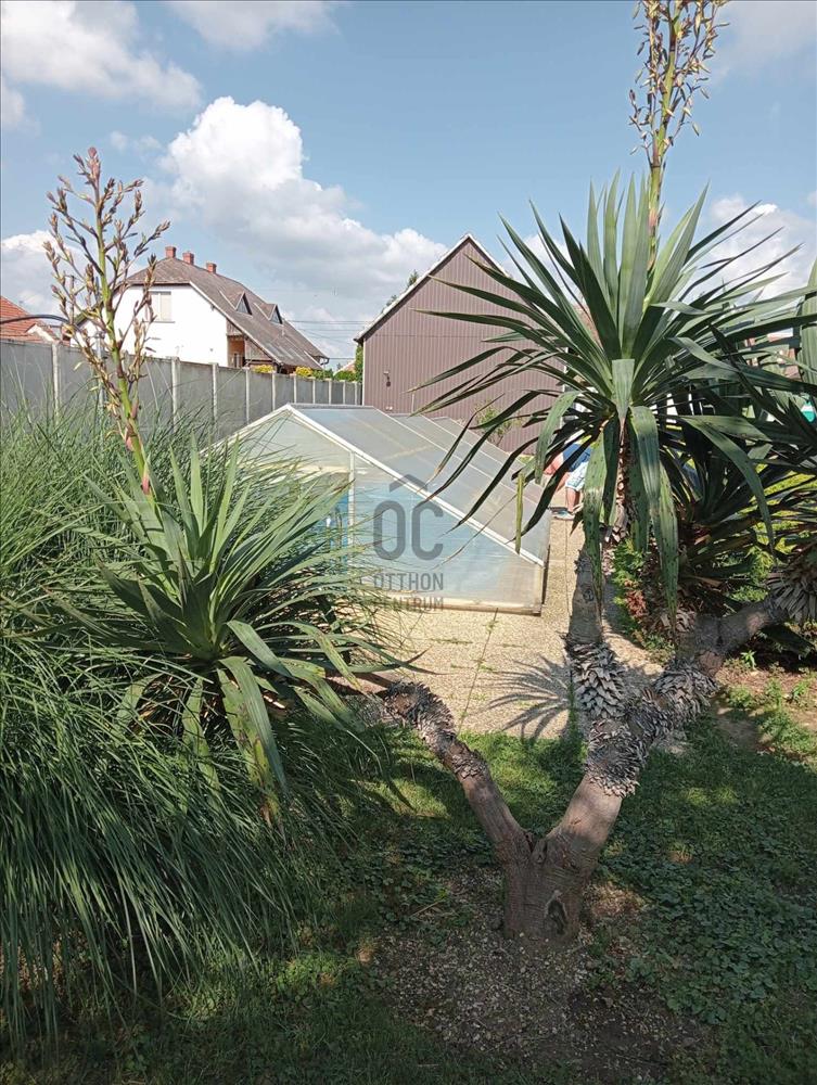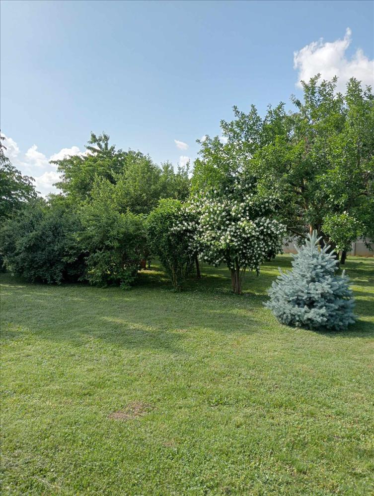 Kert -a fotókon látható- parkosított, gondozott zárt kerítéssel körülvett minden irányból. 7X3 méteres medence teljesen felszerelt gépházzal nyújt nyáron kellemes lazítást tulajdonosainak. Helyett kapott a medence közelében egy vizesblokkal felszerelt nyárilak, amely a pihenést, kerti sütögetést, vendégek elszállásolását teszi lehetővé.