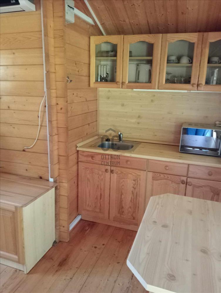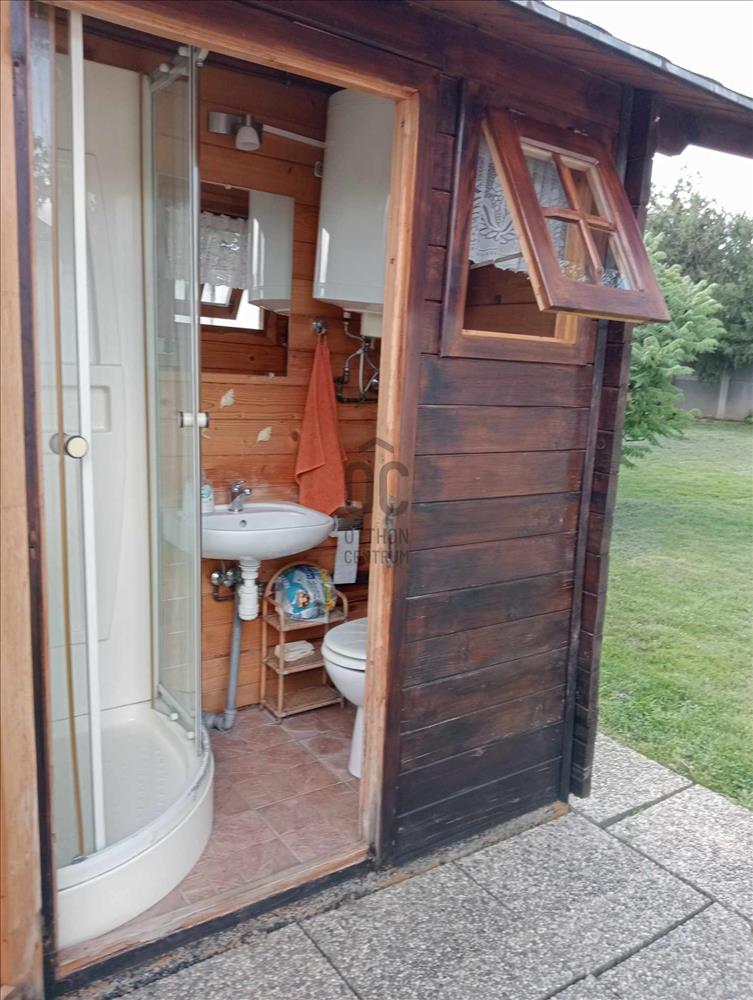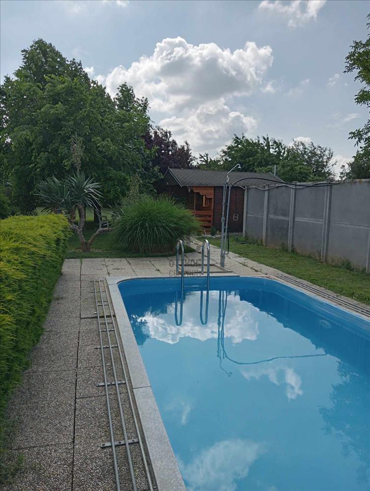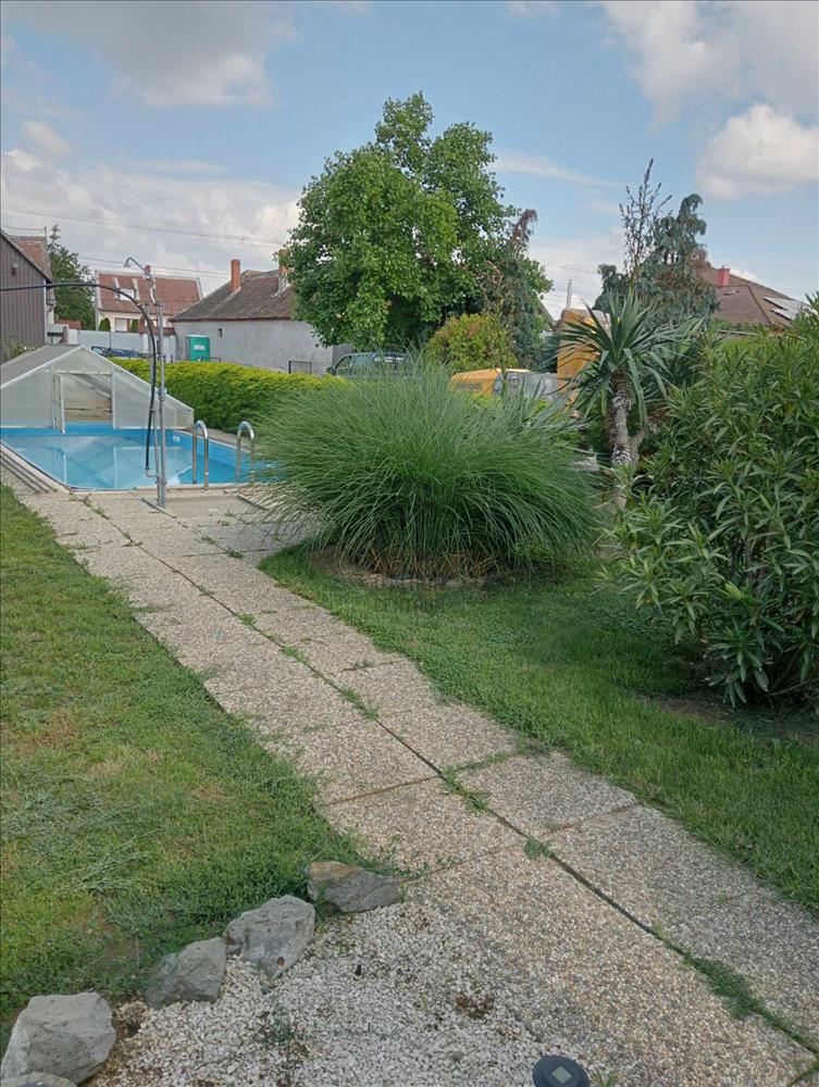 Kert parkosított, gondozott zárt kerítéssel körülvett minden irányból. 7X3 méteres medence teljesen felszerelt gépházzal nyújt nyáron kellemes lazítást tulajdonosainak. Helyett kapott a medence közelében egy vizesblokkal felszerelt nyárilak, amely a pihenést, kerti sütögetést, vendégek elszállásolását teszi lehetővé.