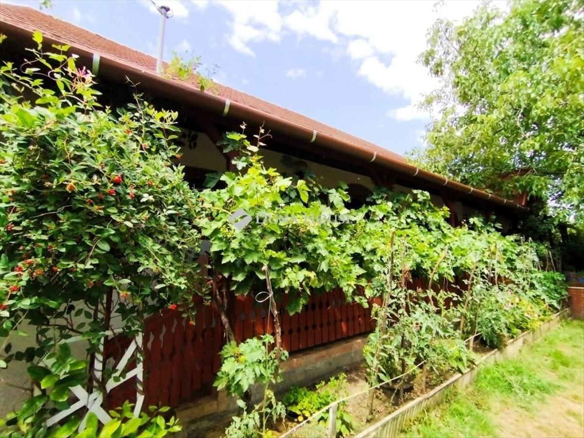 A ház teljes hosszában fedett, járólapos, csodás, árnyas tornác húzódik végig, mellette bőven termő szőlőlugas.