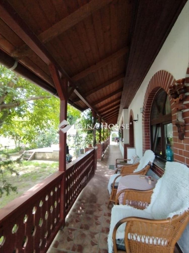 Kábel Tv-t, internetet Direkt one szolgáltatja. a ház teljes hosszában fedett, járólapos, csodás, árnyas tornác húzódik végig, mellette bőven termő szőlőlugas. Az udvaron beton járda.