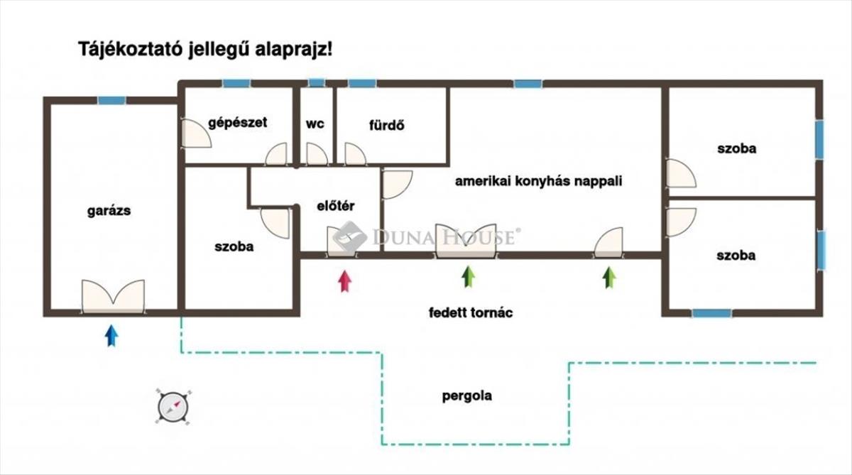 - amerikai konyhás nappali, három hálóval, garázzsal