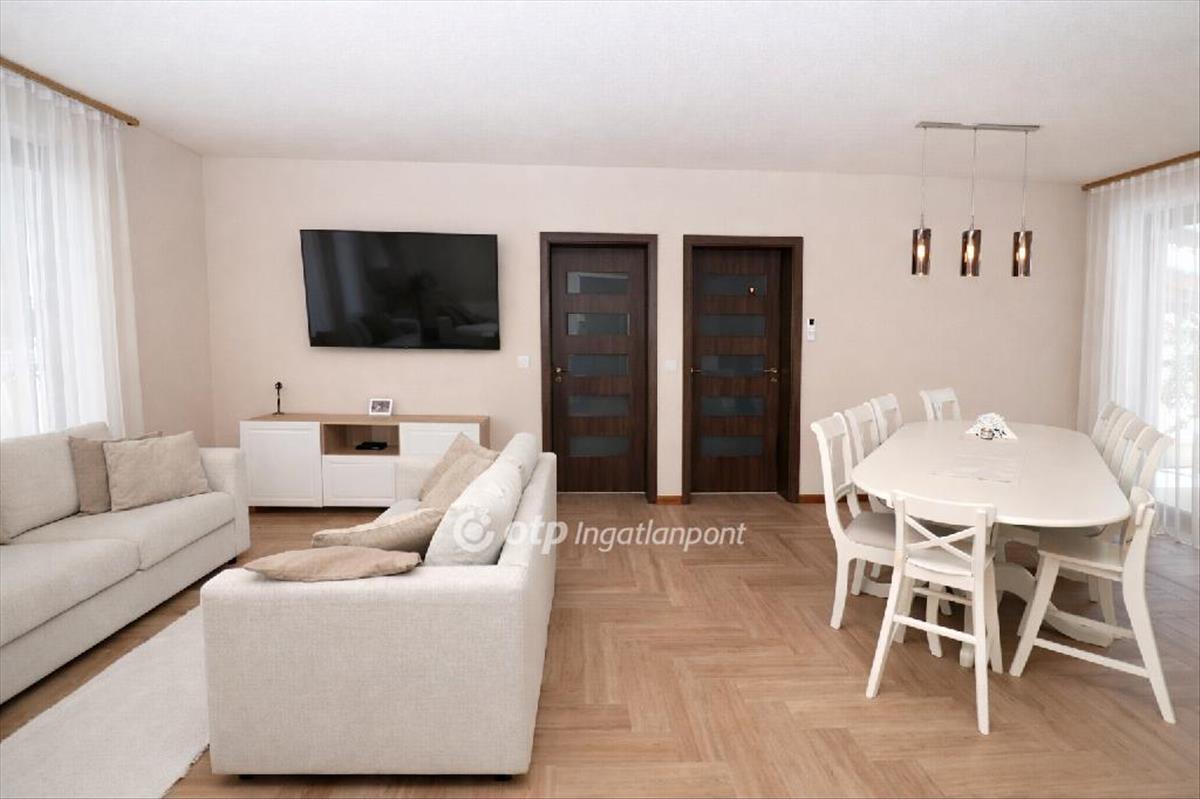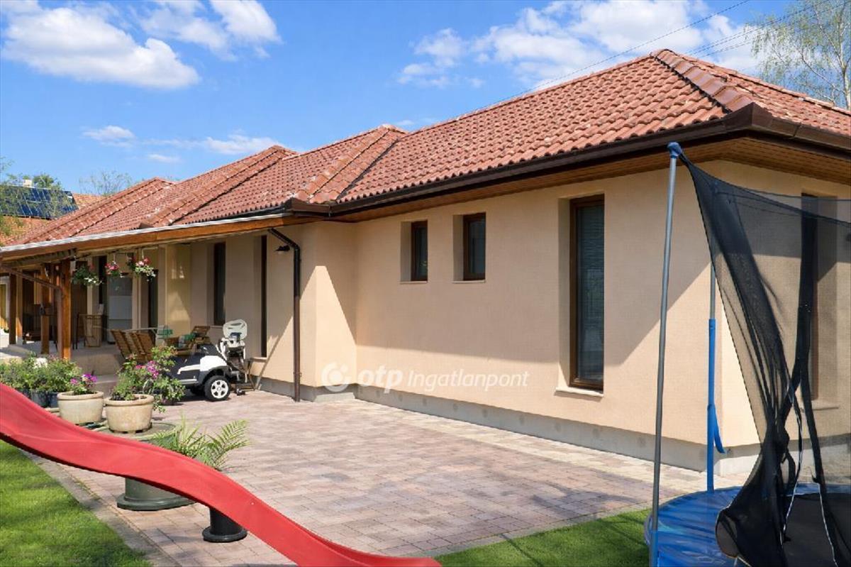 Ráckeve egyik legkedveltebb részén, különlegesen szép, természetközeli környezetben, közvetlen saját vízparttal rendelkező családi ház eladó. a prémium minőségű ingatlanhoz 1152 m2-es, nagy méretű, ősfás udvar tartozik, amely páratlan hangulatot és nyugodt életteret biztosít. a ház 2022-ben épült téglából, 20 cm vastag hőszigeteléssel, korszerű műszaki tartalommal, minden helyiségben -még a garázsban is- padlófűtéssel kialakítva. a fűtött hasznos alapterület 158 m2, amelyből 137 m2 a lakótér és 21 m2 a fűtött garázs, mindezt egy 25 m2-es, a vízpart felé tájolt fedett terasz egészíti ki. a kiváló elosztású otthon egy tágas, világos, egy légterű nappali-étkező-konyha térrel rendelkezik, amely ideális családi és baráti együttlétekhez, emellett négy külön bejáratú hálószoba biztosítja a zavartalan pihenést. a további kényelmet két fürdőszoba Wellis szaniterekkel, beépített szekrények, valamint külön vendég mosdó szolgálja. a felhasznált burkolatok, nyílászárók és egyéb anyagok mindenhol prémium minőséget képviselnek. a házban összesen három darab klímaberendezés került beépítésre, a teraszajtón és az üzlethelyiség ablakain elektromos redőnyök gondoskodnak a kényelemről. Az ingatlan egyik különlegessége a házon belül kialakított, sokféle vállalkozásra alkalmas exkluzív üzlethelyiség, amely fodrászatnak, műkörmös szalonnak, irodának vagy home office célra is ideális. Az üzlethelyiség külön bejárattal is rendelkezik, ugyanakkor a lakótérből is közvetlenül megközelíthető, így akár két generáció együttélésére is alkalmassá teszi az ingatlant. Az üzletben külön konyha, beépített led világítás, beépített hangszórók, valamint mosdó, wc és zuhany kiállások kerültek kialakításra, így teljesen önálló egységként is használható. a gondosan kialakított kert különleges, természetközeli hangulatot áraszt. a telek végében található, mintegy 80 méter hosszú saját vízpart közvetlen kapcsolatban áll a Ráckevei Soroksári Dunával, így a víz közelsége mindennap élvezhető. a víz felé néző, tágas, 25 m2-es fedett terasz kiváló helyszíne a pihenésnek és az együttléteknek, melynek kényelmét tovább emeli a teraszon kialakított, fából készült kerti konyha. a kertben automata öntözőrendszer működik, az előkert fákkal és bokrokkal parkosított, a gyermekek számára játszótér került kialakításra az elektromos nagykapuval ellátott, térkövezett kocsibeálló folytatásában. a ház mögött zárt tároló szolgál a kerti eszközök elhelyezésére, a kertben pedig egy félig nyitott tároló áll rendelkezésre például kerékpárok számára. a parkolás kényelmét a padlófűtéssel ellátott garázs, valamint a ház előtt és az udvarban kialakított, viacolorral burkolt beállók biztosítják. a fűtésről és a melegvíz-ellátásról kondenzációs kazán puffertartállyal gondoskodik. Az összközműves ingatlan a modern fűtési rendszernek, a vastag szigetelésnek, a kiváló minőségű nyílászáróknak valamint az energiatakarékos műszaki berendezéseknek, világítótesteknek köszönhetően rendkívül alacsony rezsiköltséggel üzemeltethető. a fűtés és az áram havi költsége egyaránt mindössze 10 ezer forint. Összességében ez az ingatlan a kedvelt, rendezett, városközponthoz közeli elhelyezkedés, a közvetlen vízpart, a rendkívül különleges természetközeli környezet, a tágas, ősfás udvar, a prémium műszaki és esztétikai kialakítás, valamint a sokoldalúan hasznosítható üzlethelyiség miatt is kiemelkedő lehetőség. Az ingatlan tehermentes, akár egy hónapon belül költözhető. Alkalmas az Otthon Start államilag támogatott hitel és a csok+ igénybevételére is, valamint igény esetén a vásárláshoz az OTP Bank személyre szabott, kedvezményes finanszírozási ajánlataival és díjmentes hitelügyintézéssel nyújtunk segítséget. Ha egy valóban egyedi adottságokkal rendelkező, rövid határidővel költözhető otthont keres, amely egyszerre szolgálja a kényelmes családi életet és a munkavégzés lehetőségét is, akkor ezt az ingatlant mindenképpen érdemes személyesen is megtekinteni.