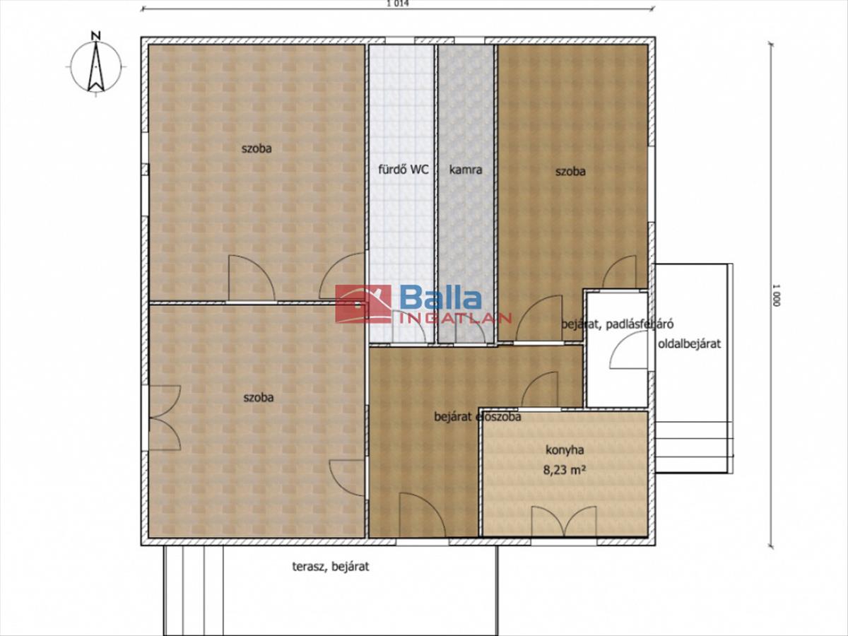 - Bruttó 100 nm alapterületű lakórész: három lakószoba, két előtér, konyha, fürdőszoba Wc-vel.