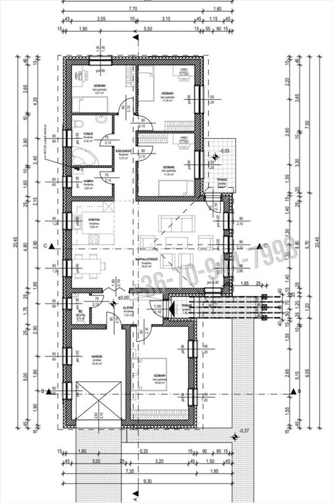 Ez az ingatlan nemcsak a korszerű technológiákat (padlófűtés, energiatakarékos gázcirkó) kínálja, hanem a kiváló térkihasználást: garázs, előszoba, vendég Wc. , Fürdőszoba, kamra/kazánház, közlekedő, 4 szoba, tágas amerikai konyhás nappali és közvetlen kertkapcsolat a teraszon keresztül.