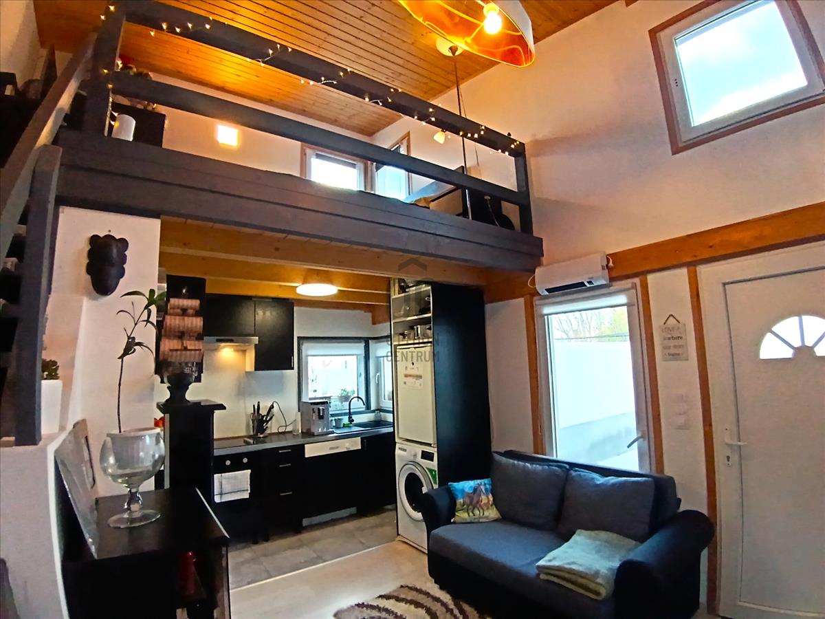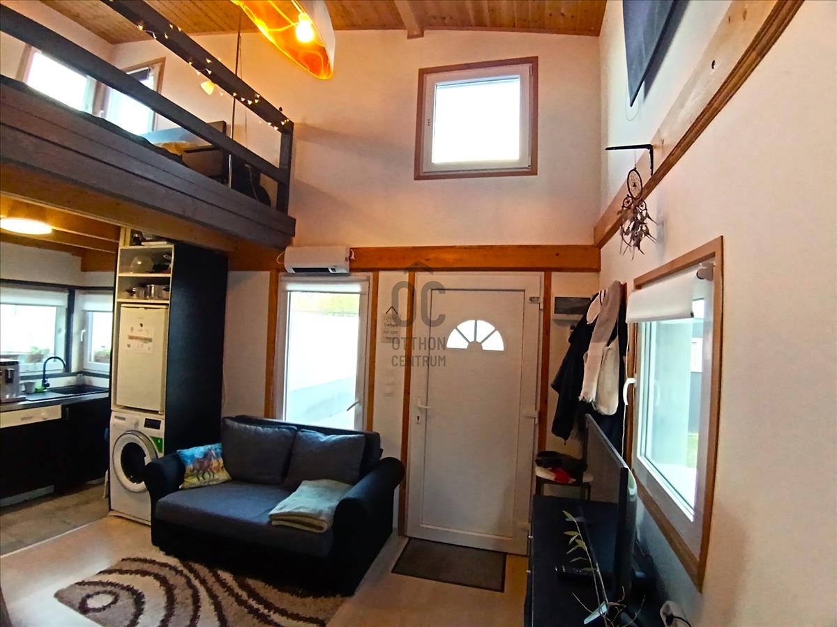 Ráckevén pici de kompakt, 2022-ben épített, könnyűszerkezetes, 19 m2-es alapterületű + 9, 5 m2-es galériás kis ház, kerül most értékesítésre.