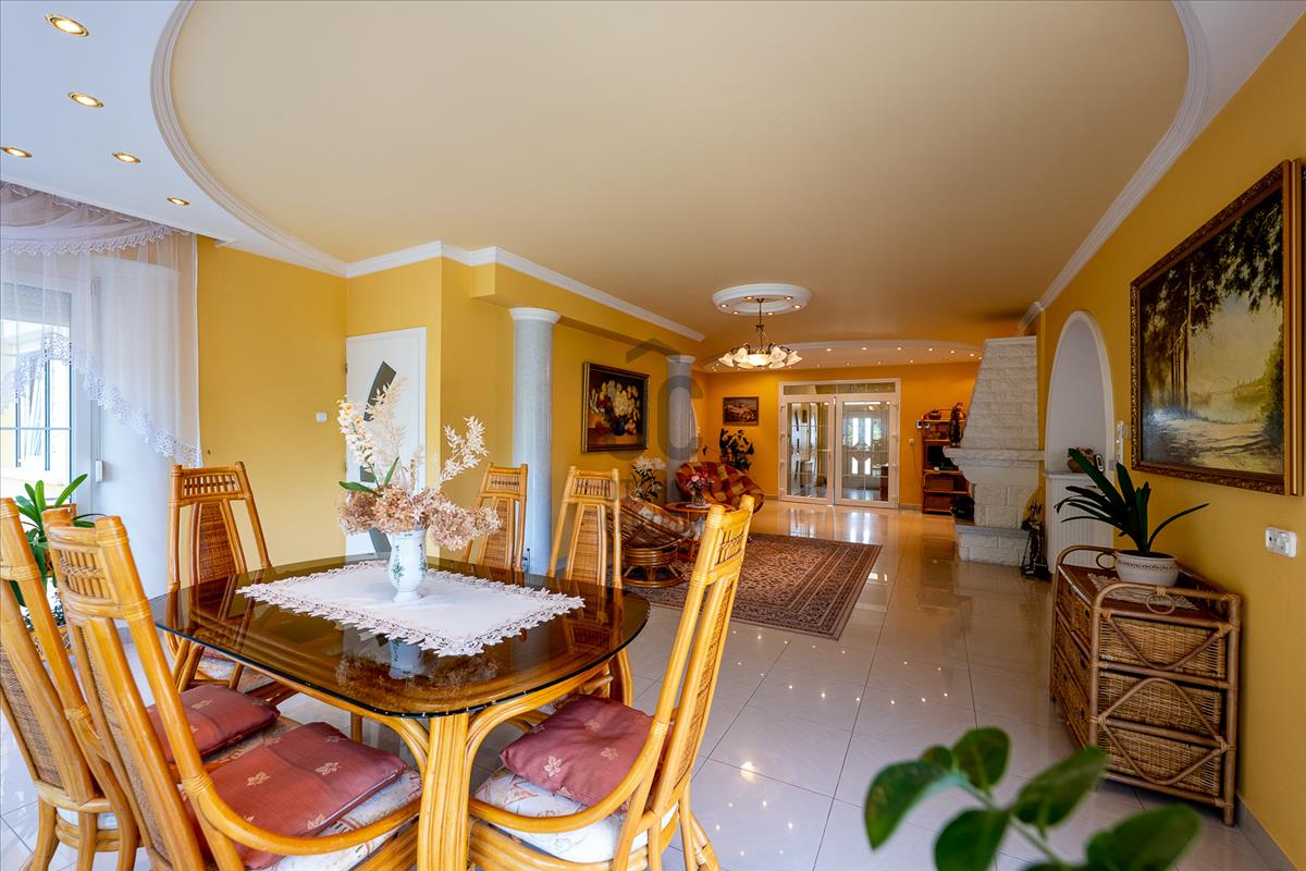Földszinten (235 m2 nagyságú) nappali, hall, 2 nagy szoba, konyha-étkező, kamra, fürdőszoba (szaunával), közlekedő, mosdó és gardrób található valamint az emeleten (155 m2 nagyságú) nappali és hat szoba, fürdőszoba, és gardrób.
