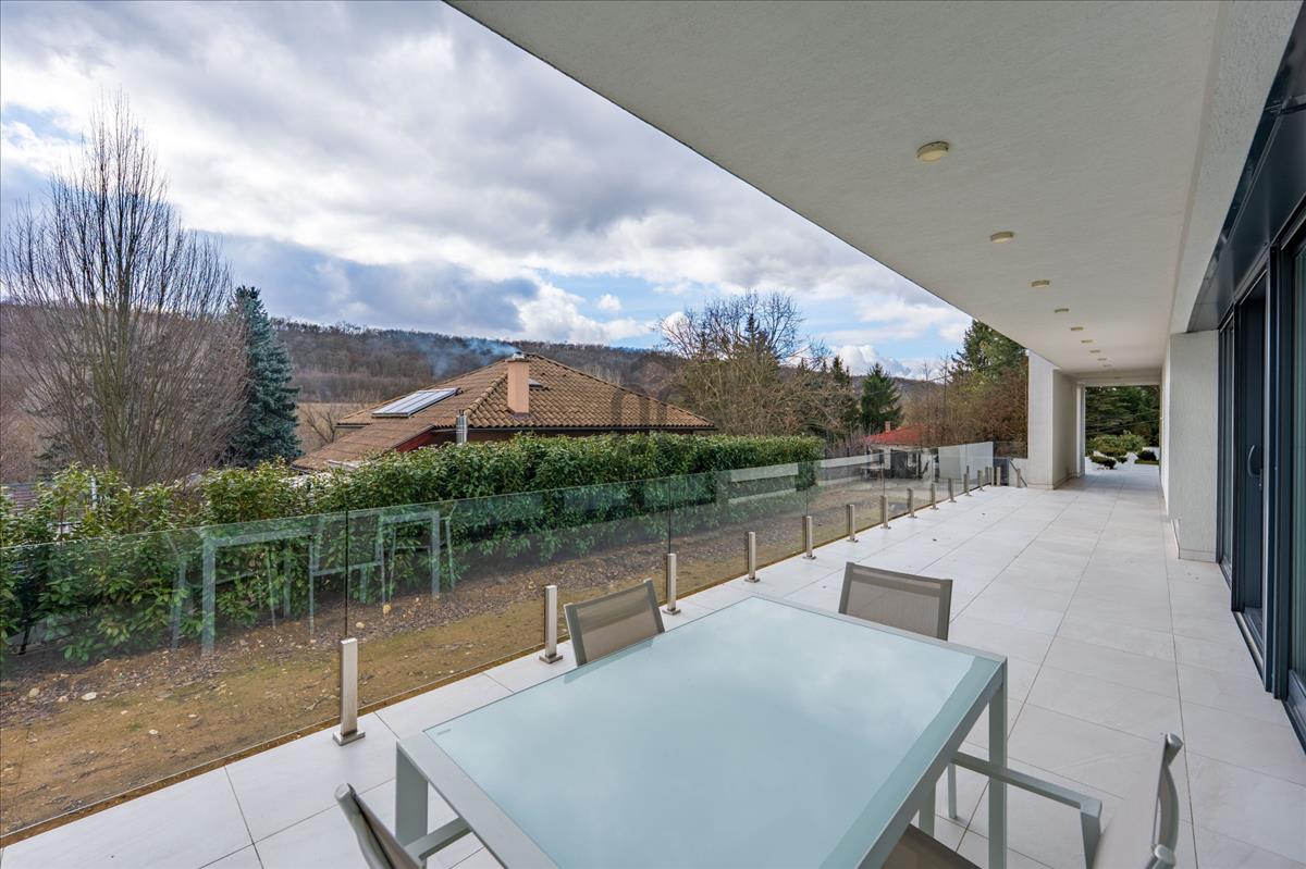 Remeteszőlős egyik legkeresettebb részén kínálunk megvételre egy minimál dizájnú, panorámás luxus családi házat, amely a modern technológiát, a letisztult eleganciát és a kényelmet tökéletes harmóniába hozza.
