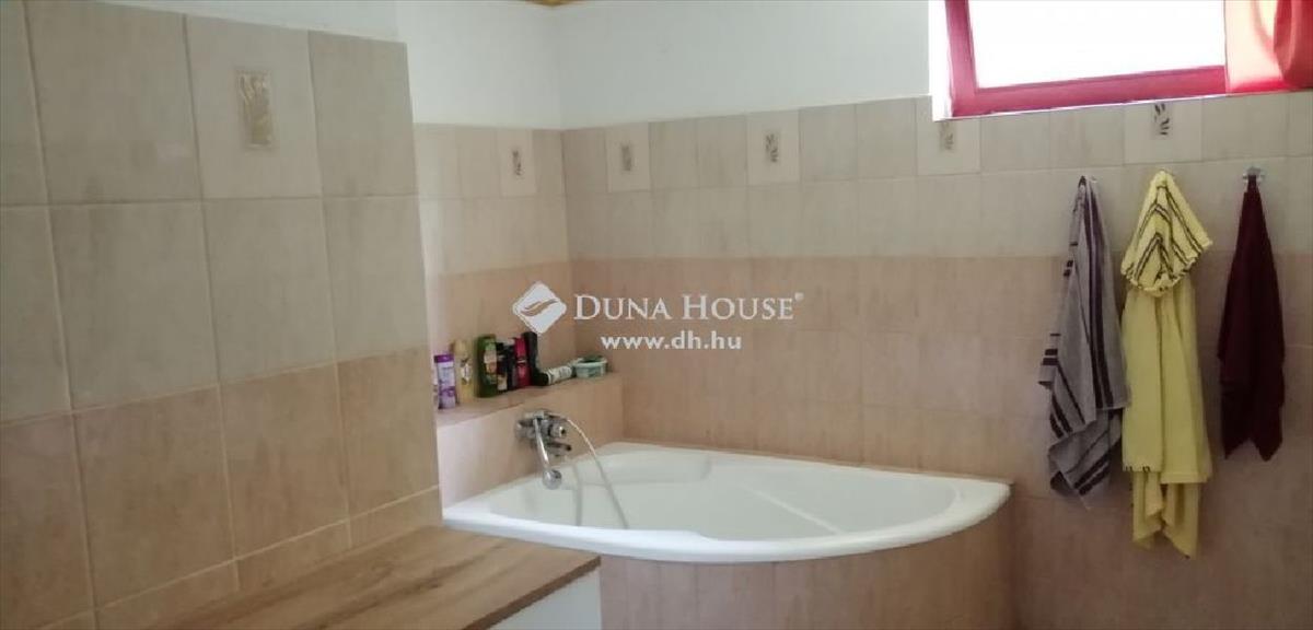 A fürdőszoba nagyon tágas, jelenleg sarokkáddal és kétszemélyes mosdókagylóval felszerelve, de lehetőség van zuhanykabin kiépítésére. Az új, dobozában levő zuhanytálca is a vételár részét képezi.